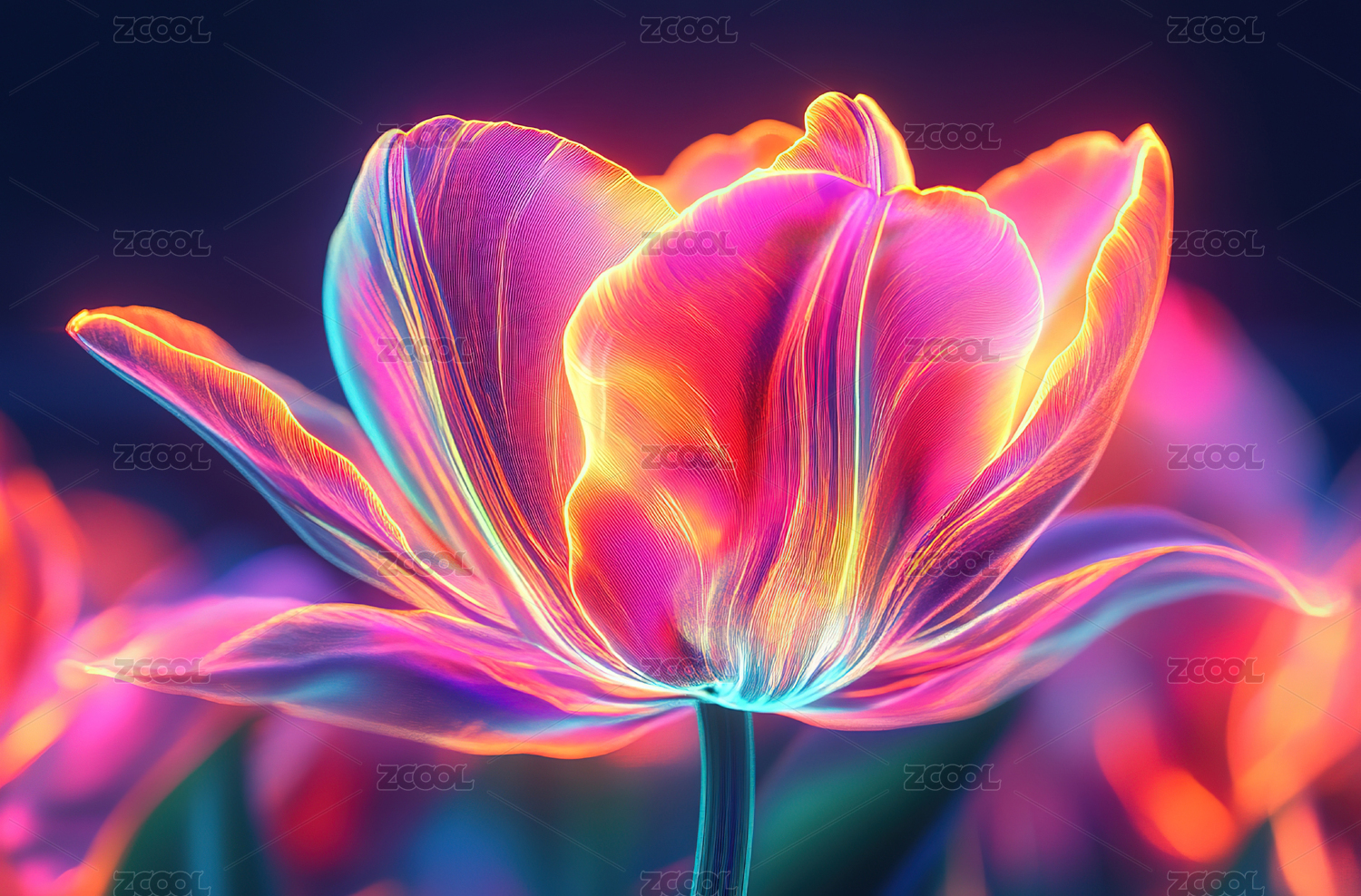 抽象发光花朵特写插图,抽象KV主视觉商务