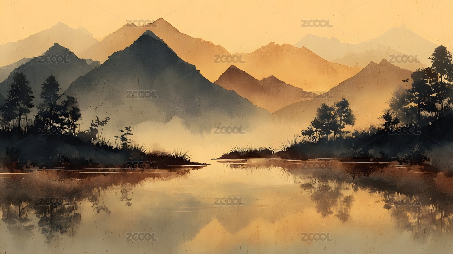 中国风山水水墨画
