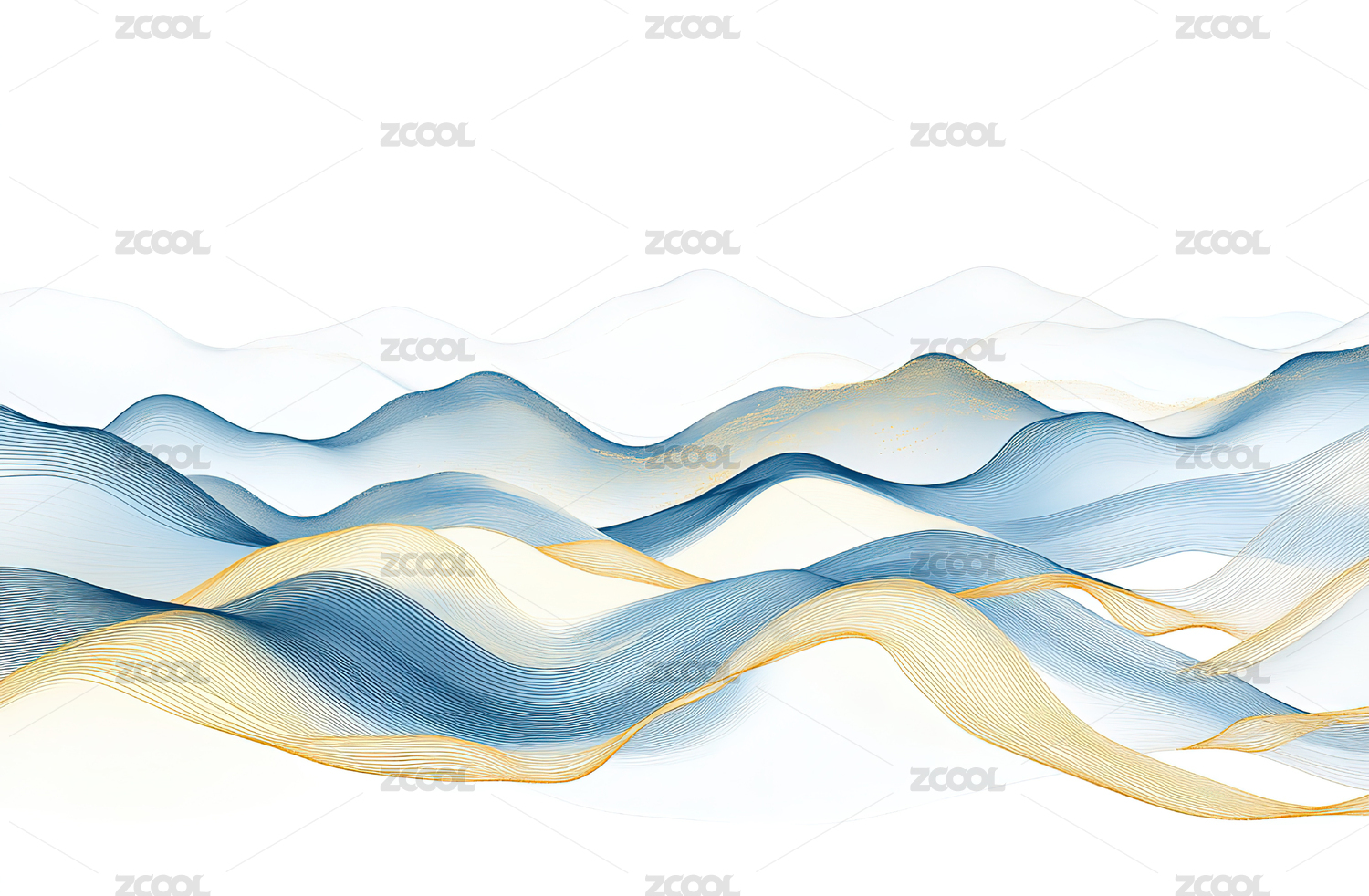 风景,自然,艺术,绘画,现代,设计,装饰,蓝色,金色,山峦