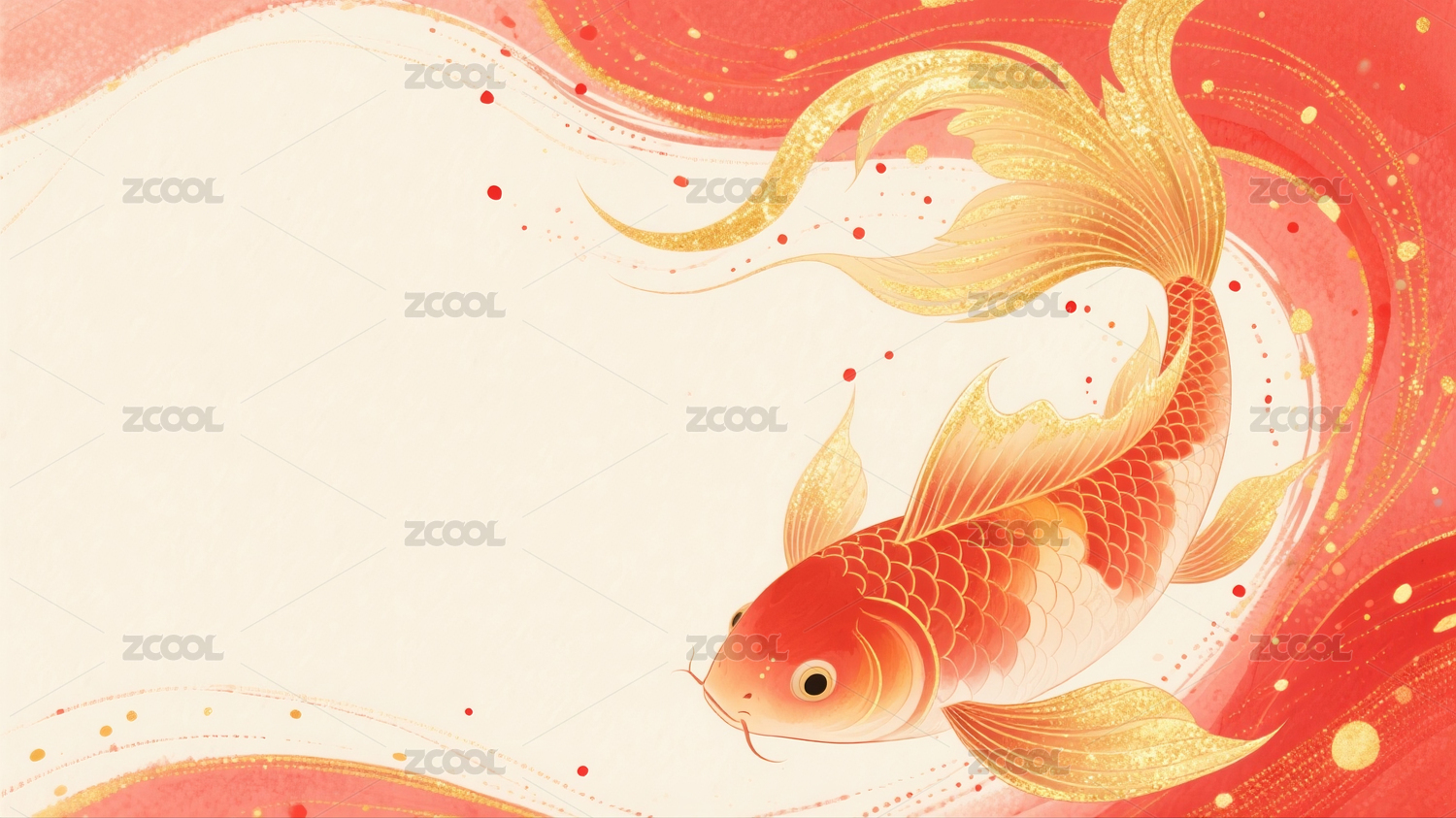 鱼,水中,梦幻,线条,飘逸,尾巴,光斑,波纹,色彩,金色