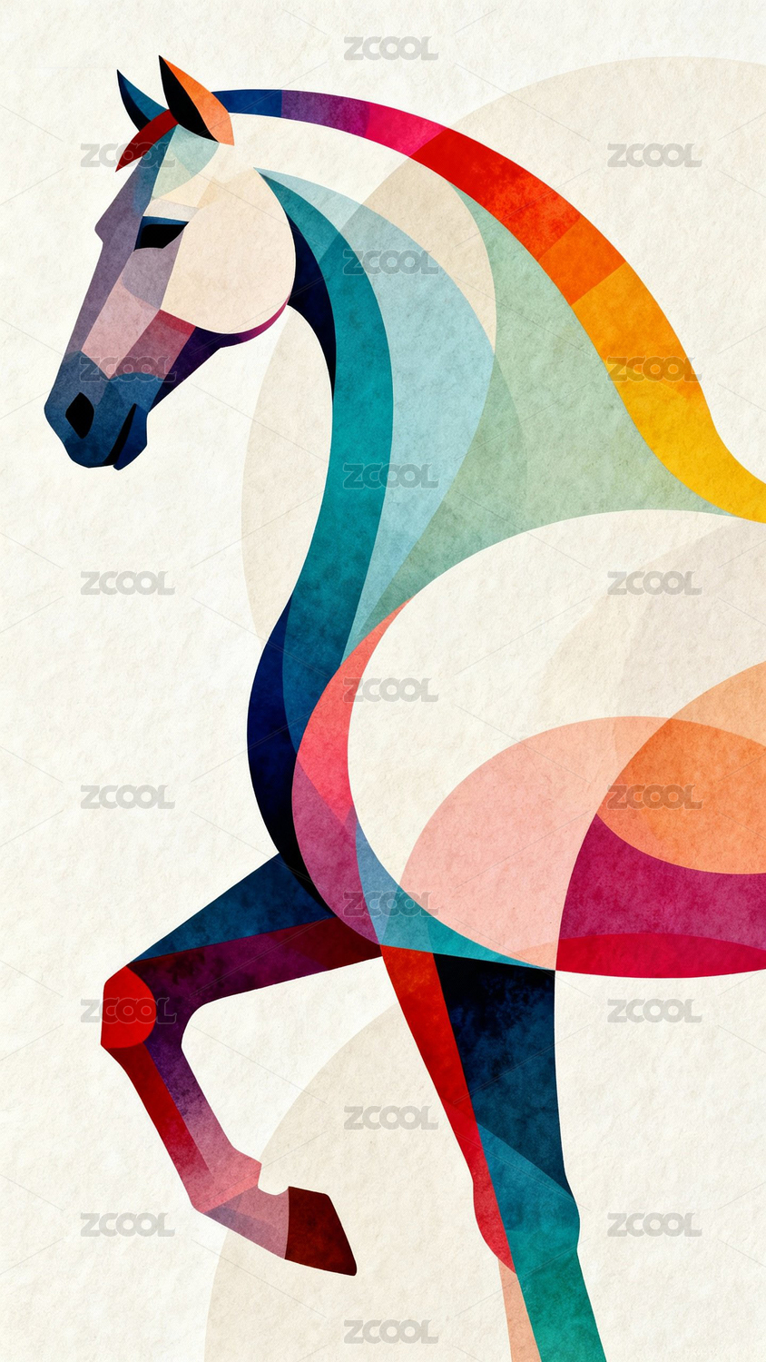 多彩几何风格马匹艺术插画