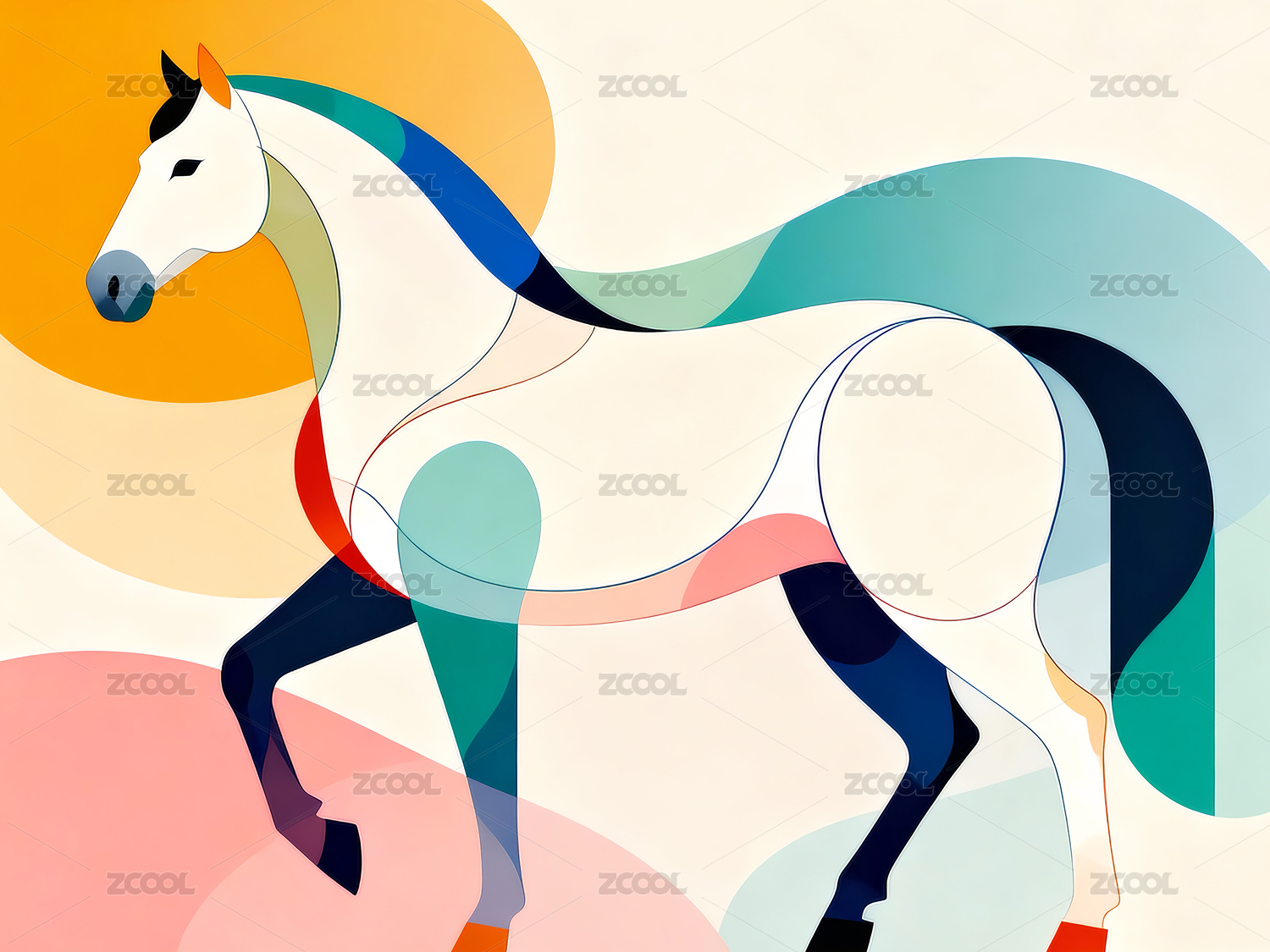 几何骏马艺术感展示背景