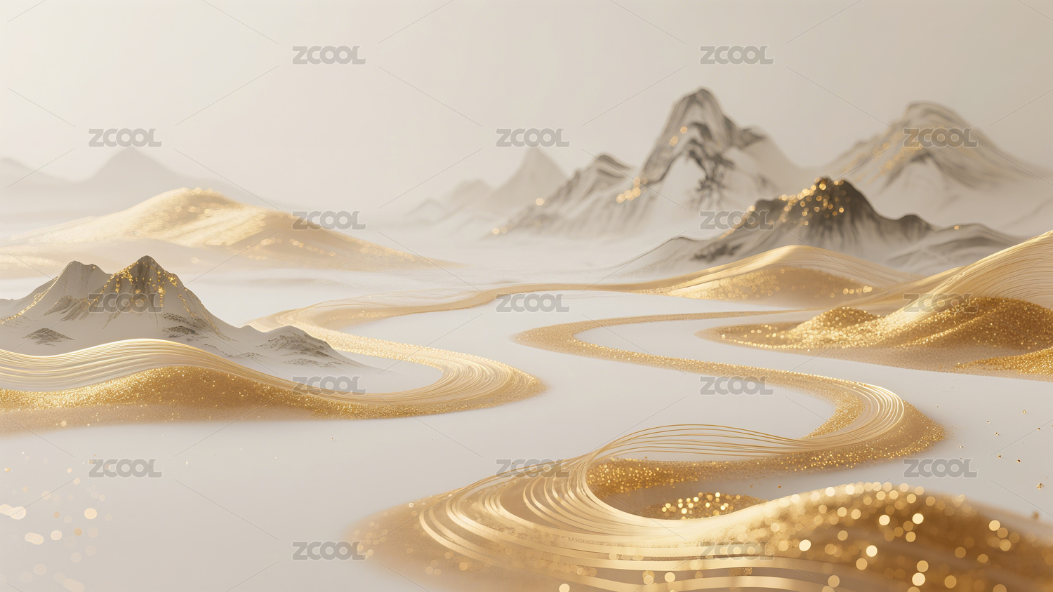 抽象白金色千里江山商务背景