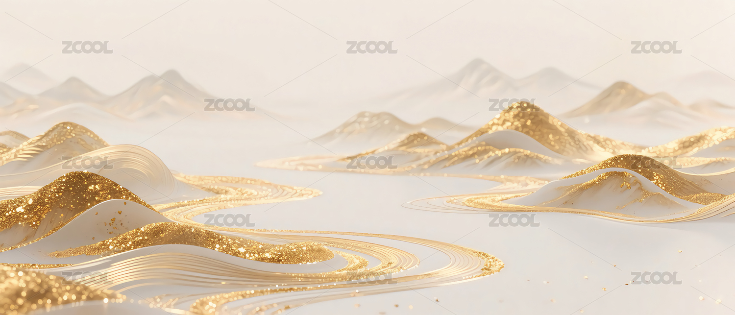 金色流沙线条山水图