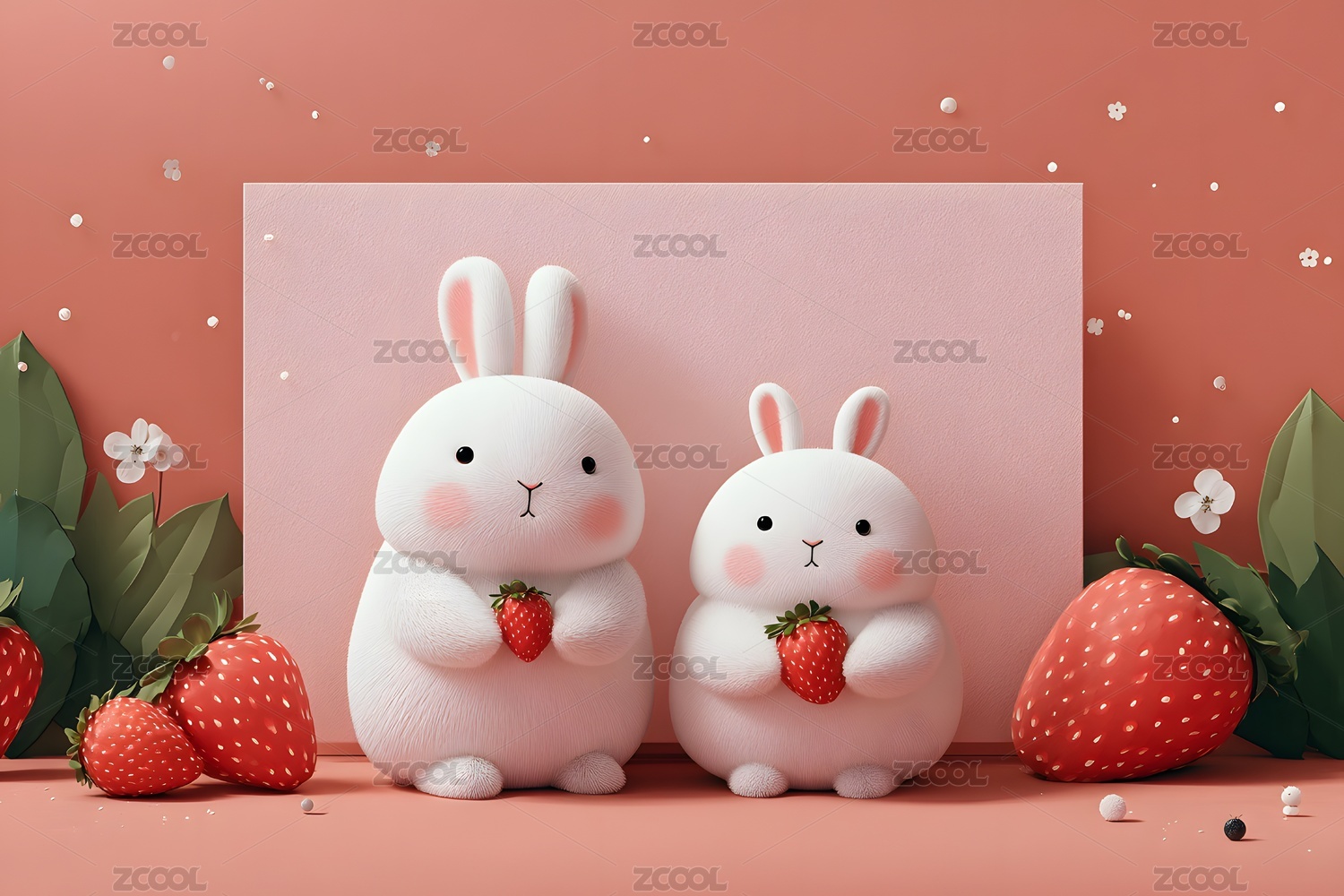 兔兔,兔子,草莓,水果,红莓,可爱,粉色,萌系,甜美,童趣
