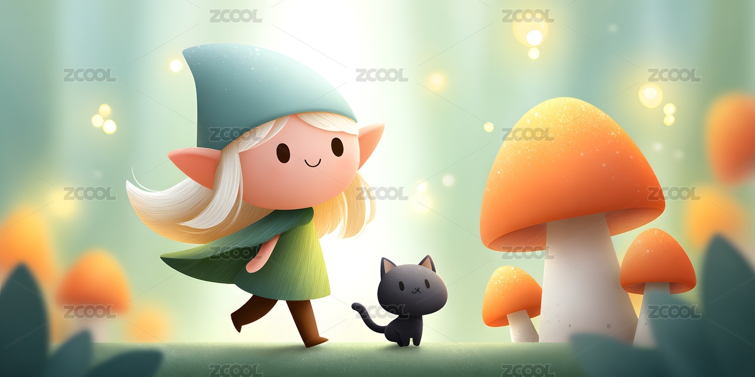 可爱,卡通,猫咪,眼睛,治愈,插画,手绘,风格,背景,梦幻