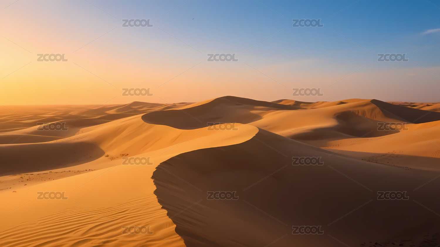 金色沙漠的壮丽诗篇 无垠沙海的温柔日落