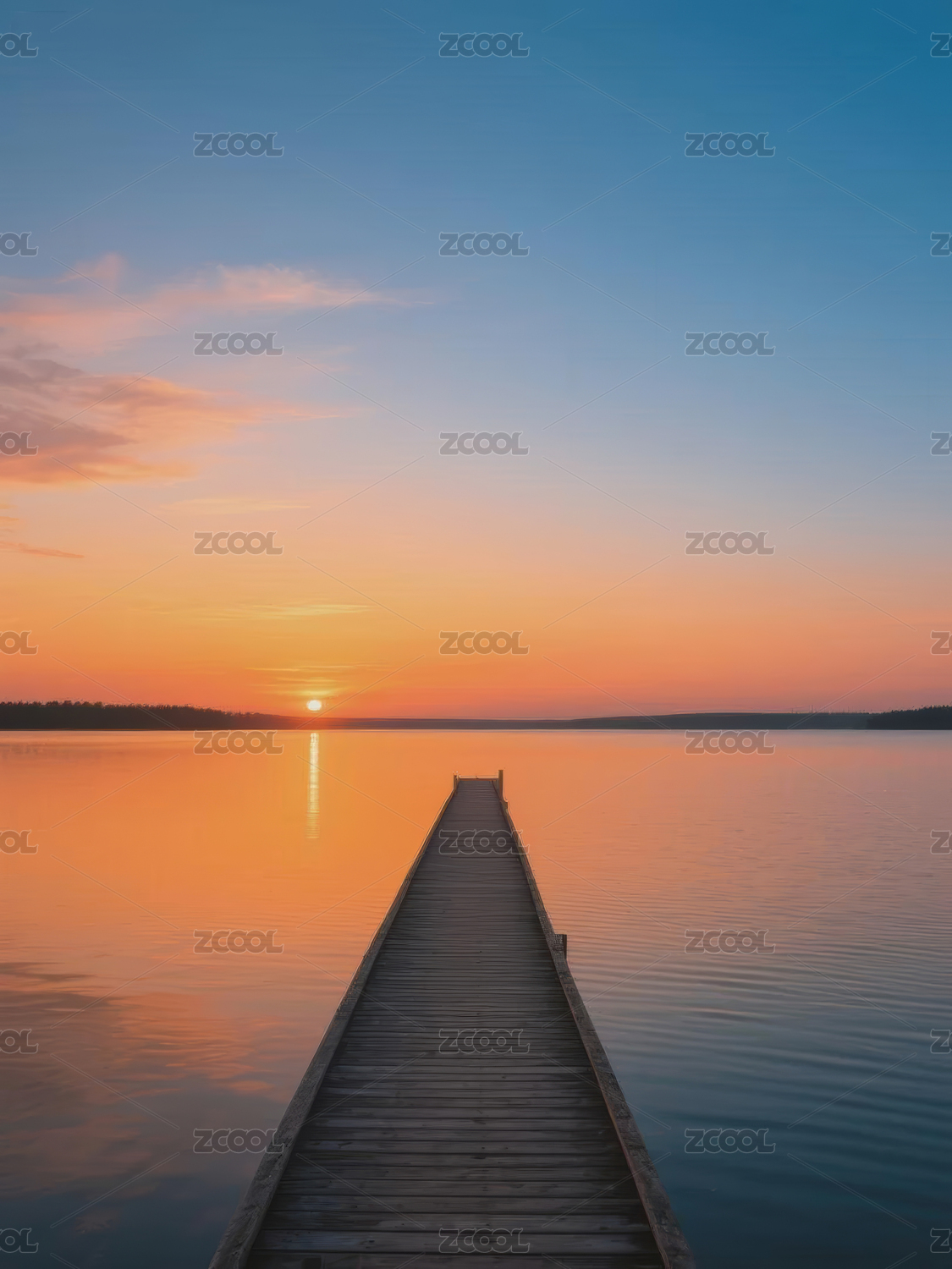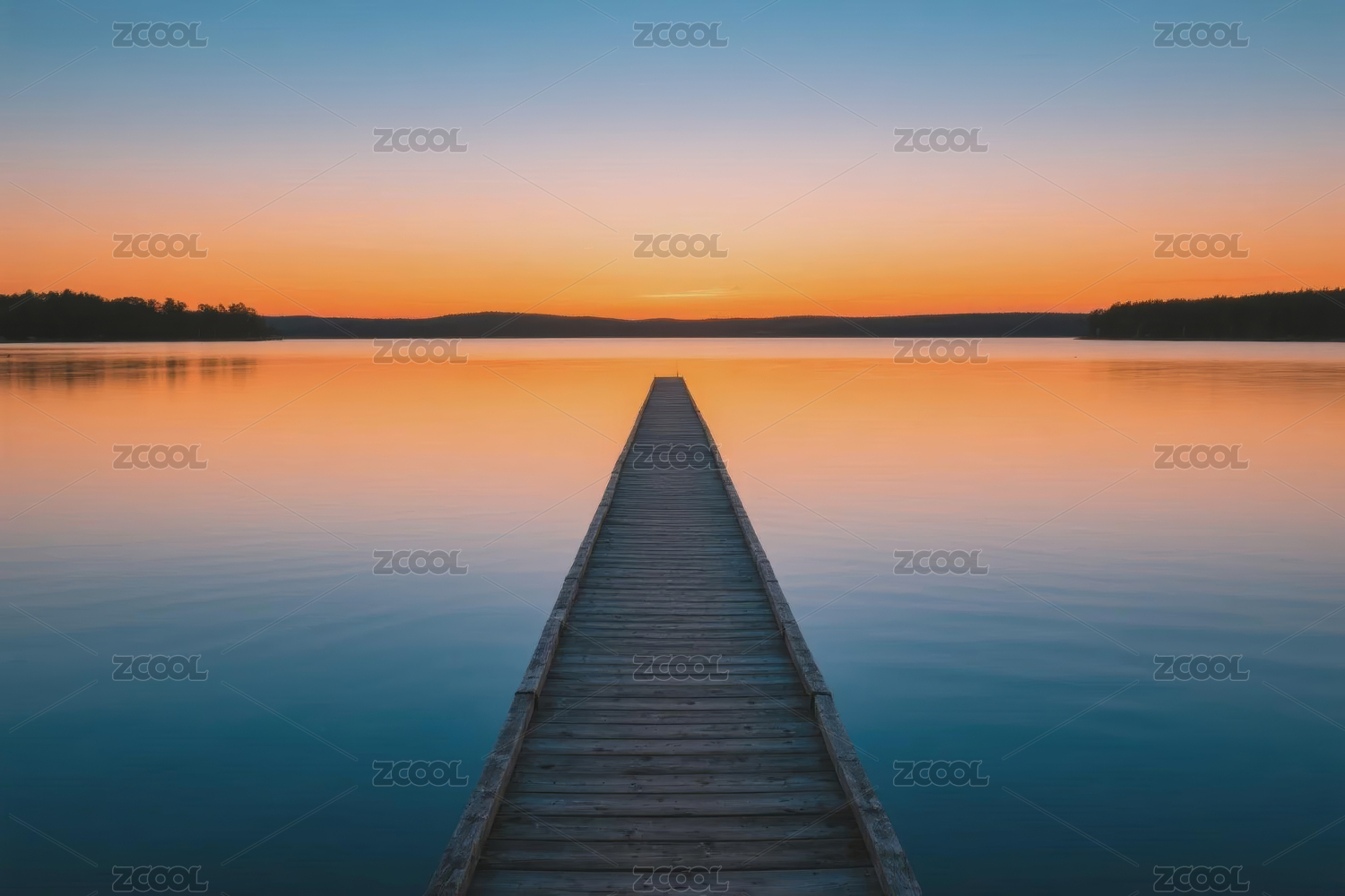 日落,湖边,栈道,晚霞,倒影,暮色,自然,风景,水面,宁静