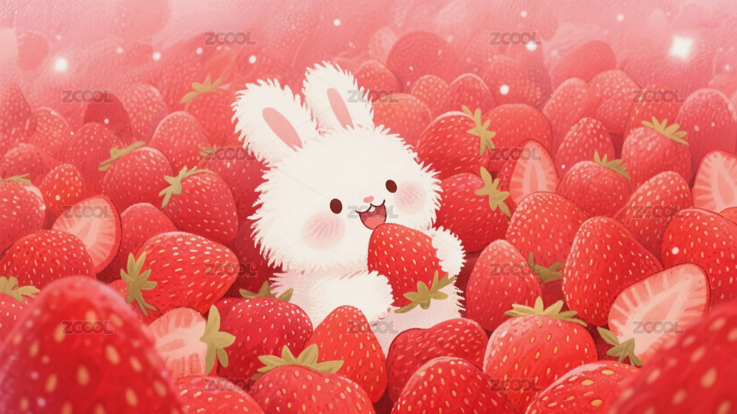 可爱兔子草莓卡通插画背景壁纸