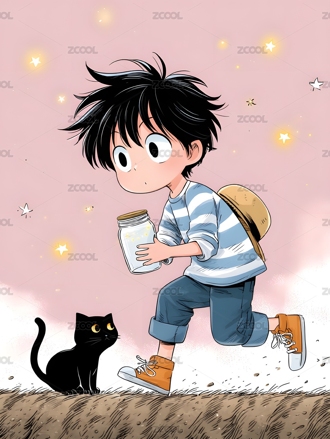 可爱,猫咪,治愈,浪漫,插画,手绘,风格,天空,背景,梦幻