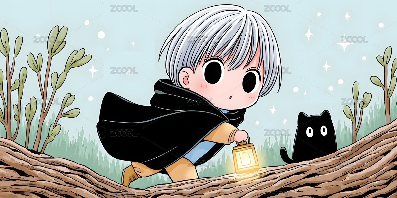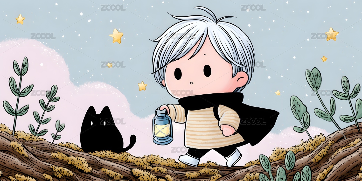 可爱,星星,黑猫,卡通,插画,童话,治愈,浪漫,粉色,蓝色