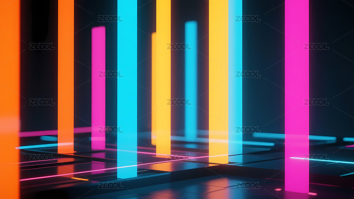 霓虹灯柱构成的虚拟空间