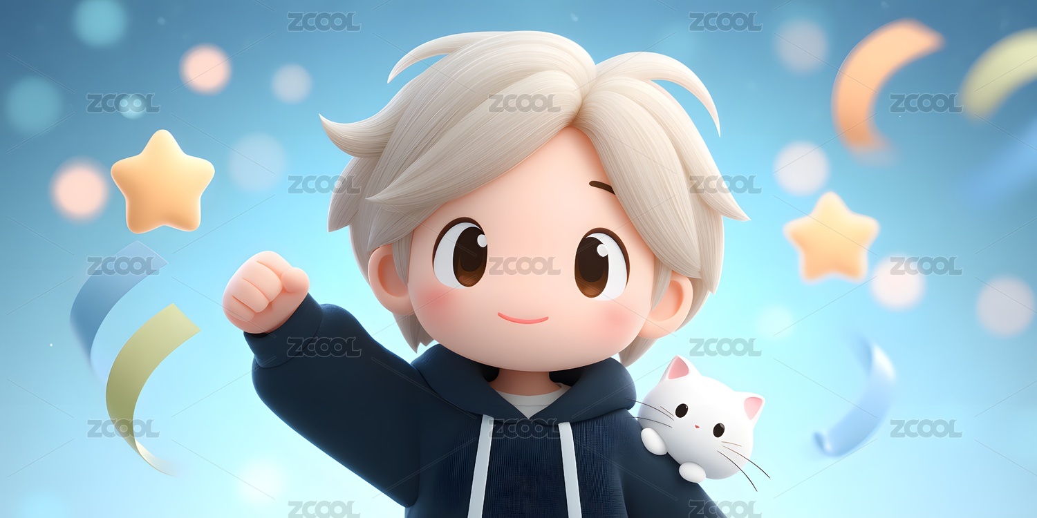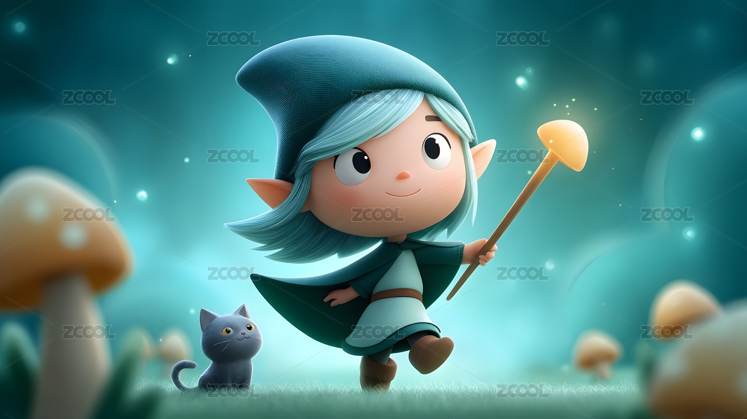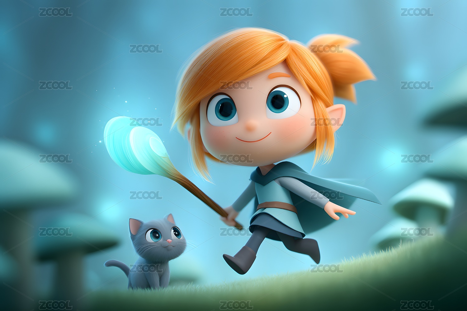 少年,人物,猫咪,森林,眼睛,可爱,行走,背影,蓝色,场景