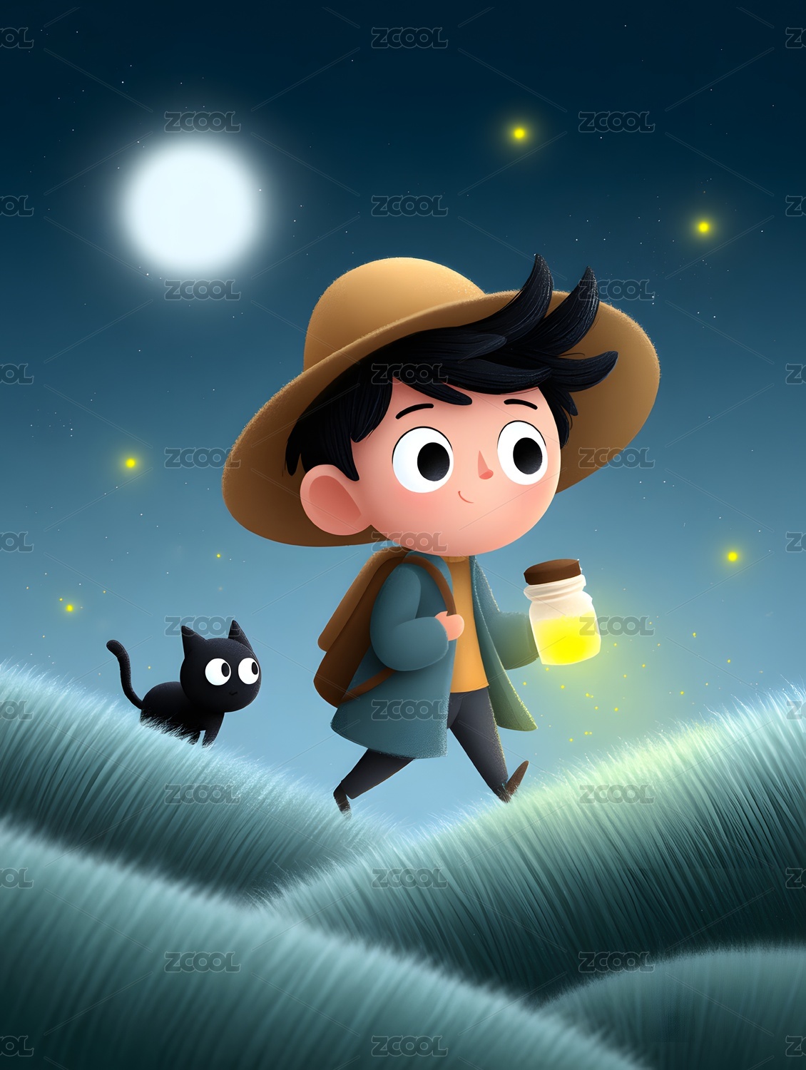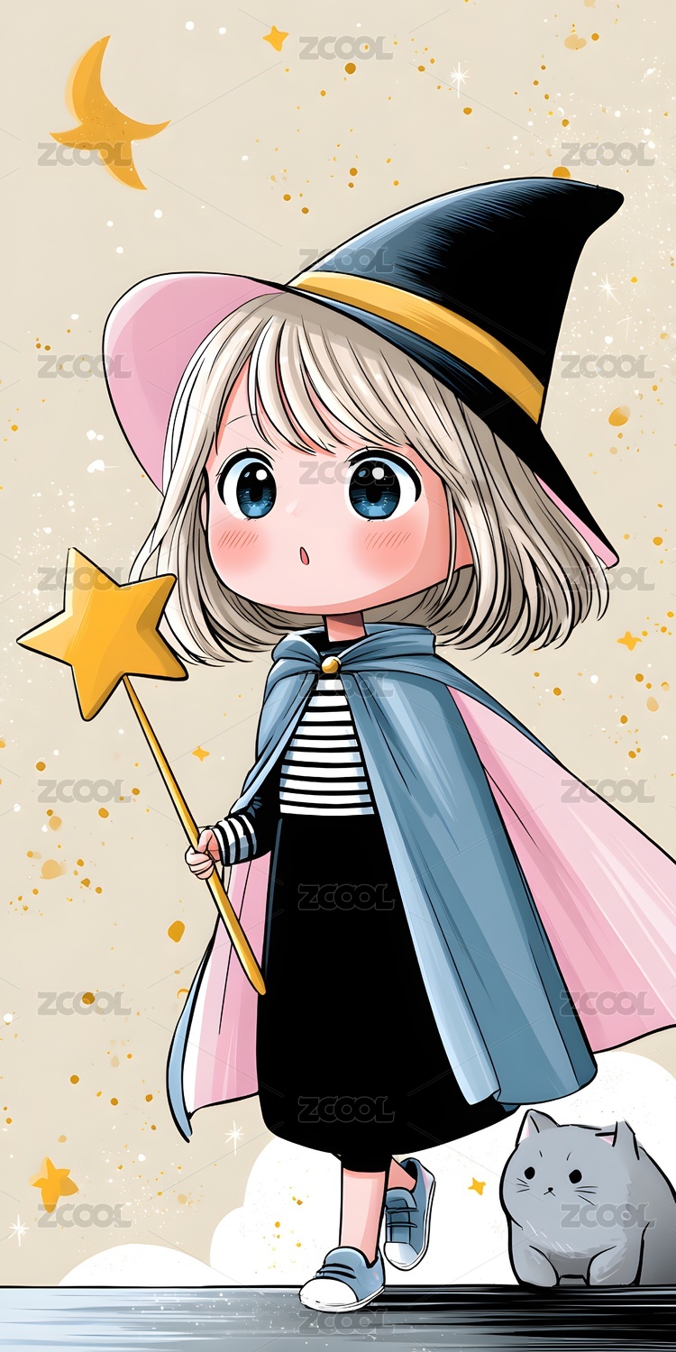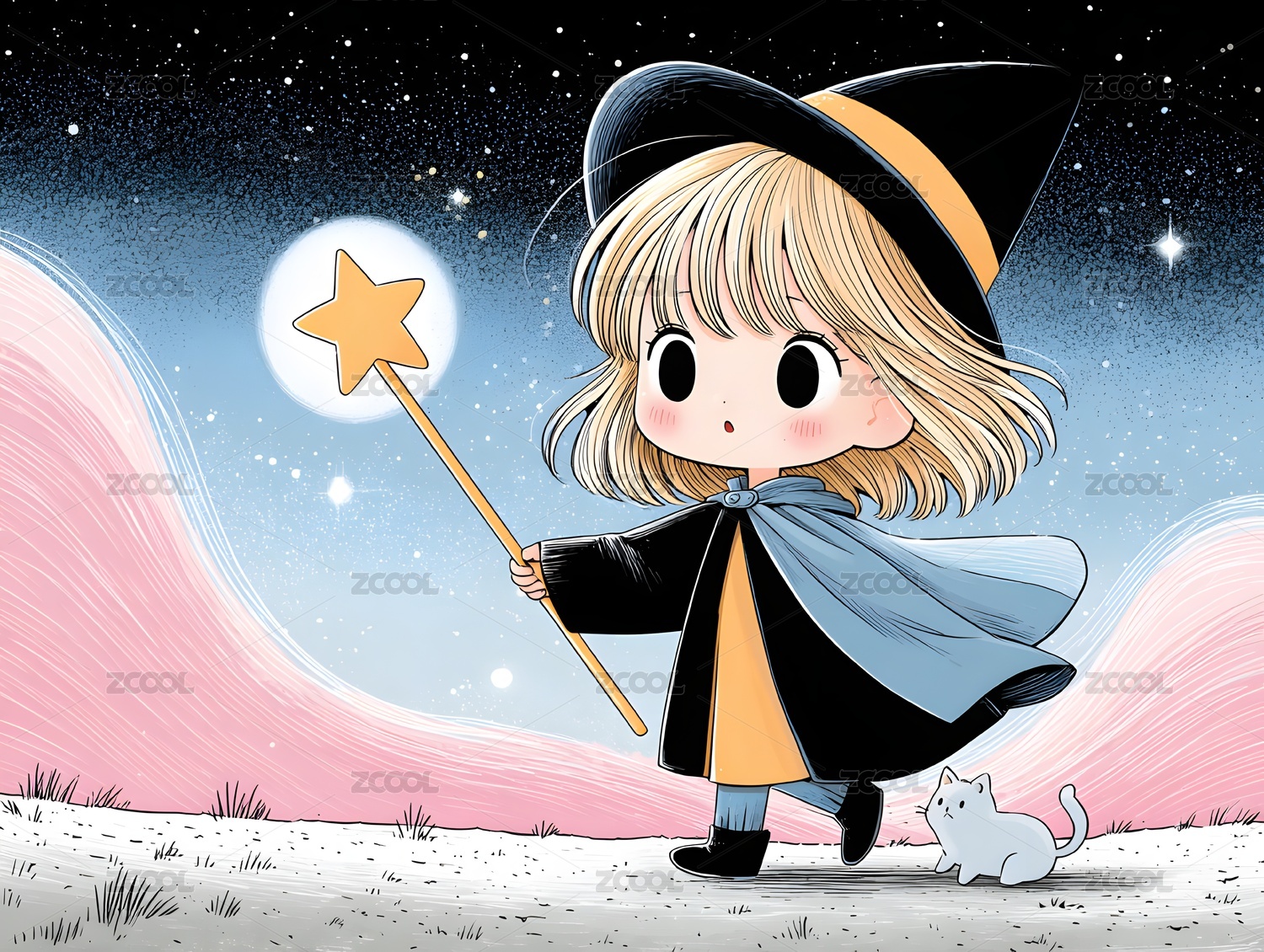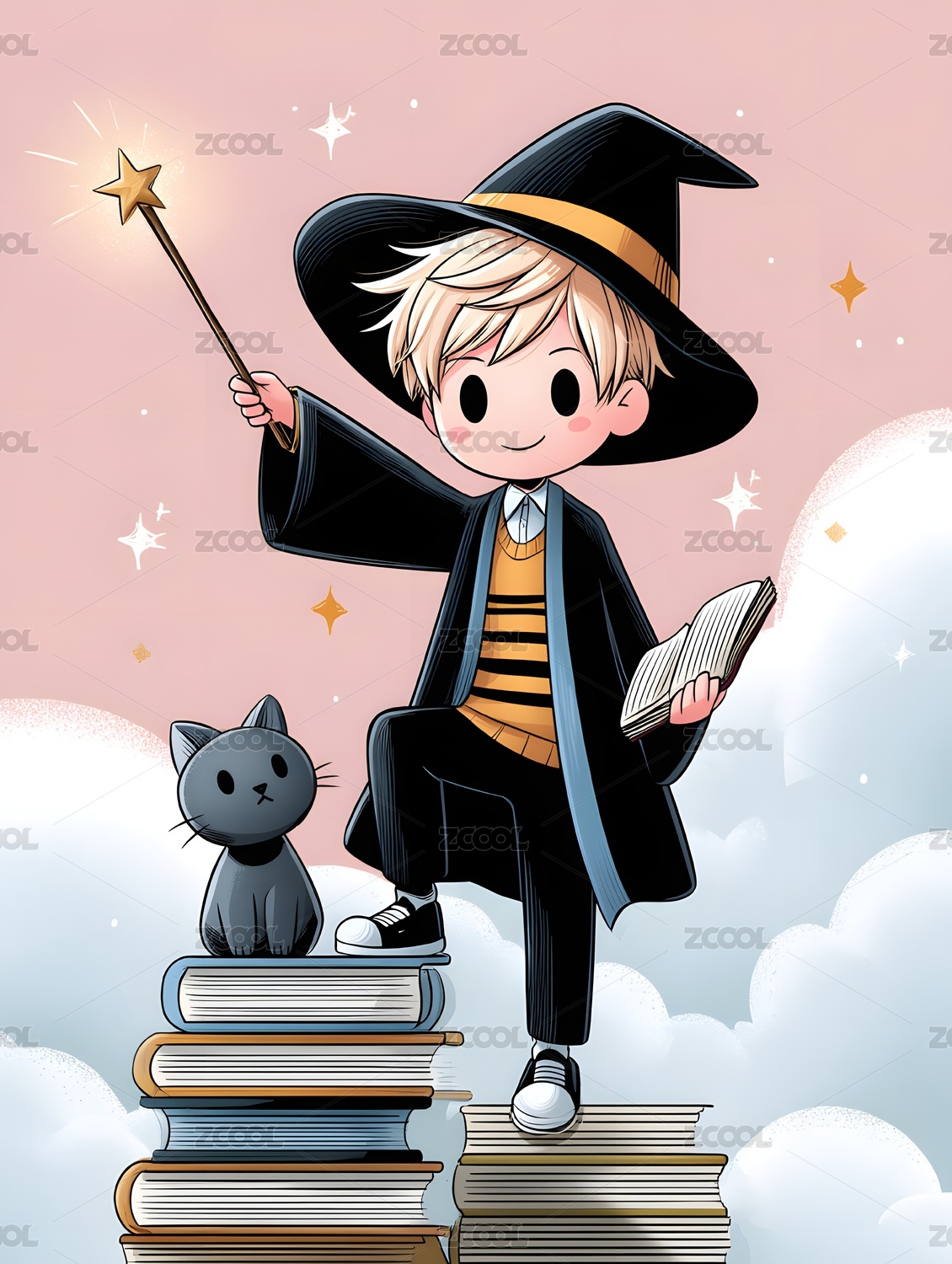 书籍,帽子,黑猫,黄色,魔法,阅读,可爱,卡通,插画,幻想