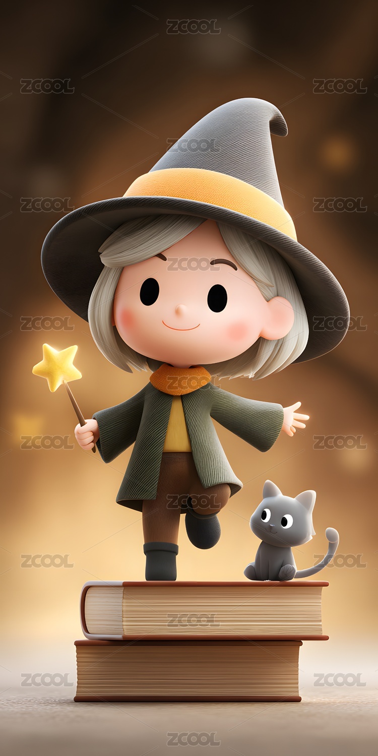 3d卡通万圣节可爱女巫形象主题