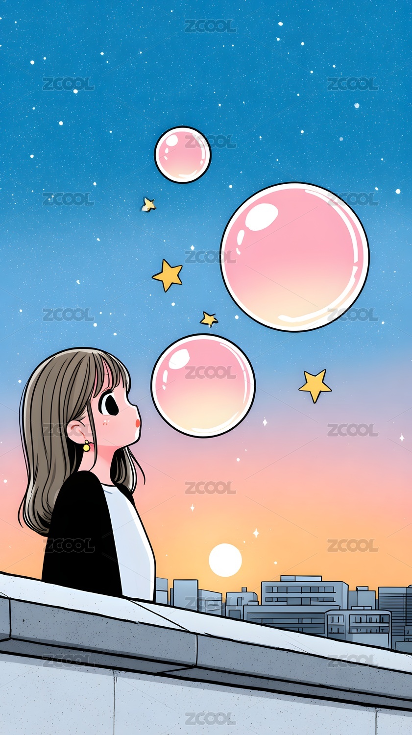 女孩仰望星空泡泡