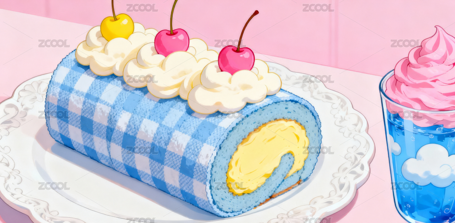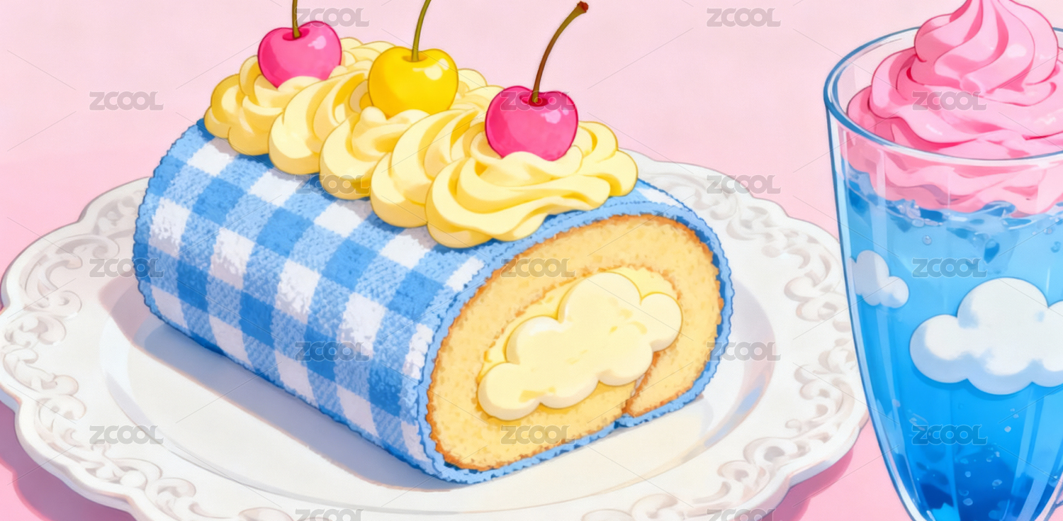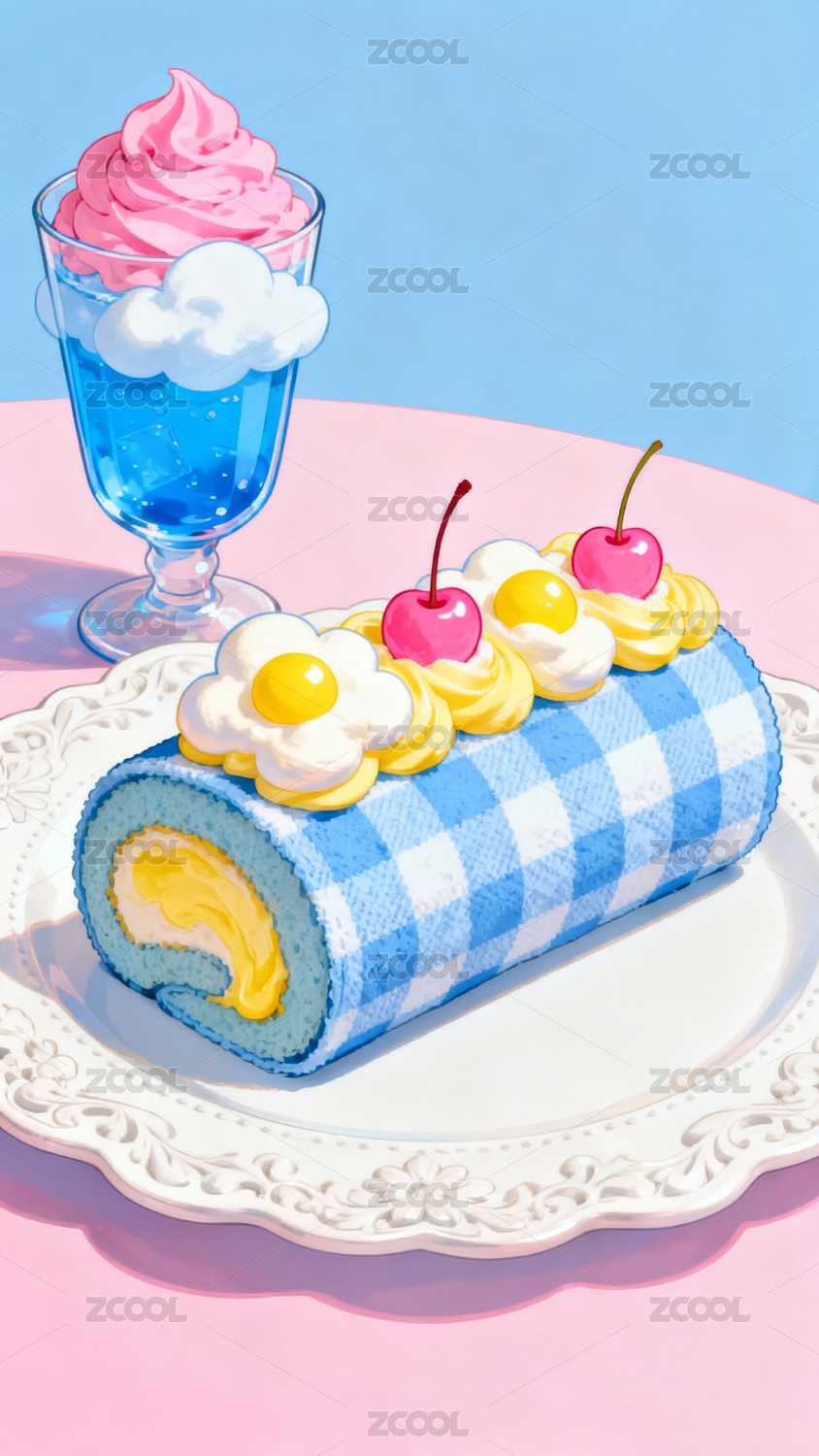 蛋糕,蓝格,奶油,樱桃,餐碟,饮品,粉色,蓬松,甜腻,清新
