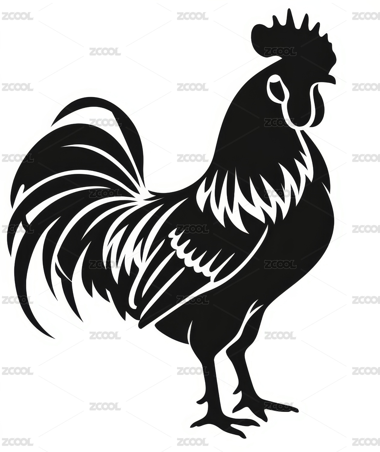 装饰公鸡剪影花纹图案