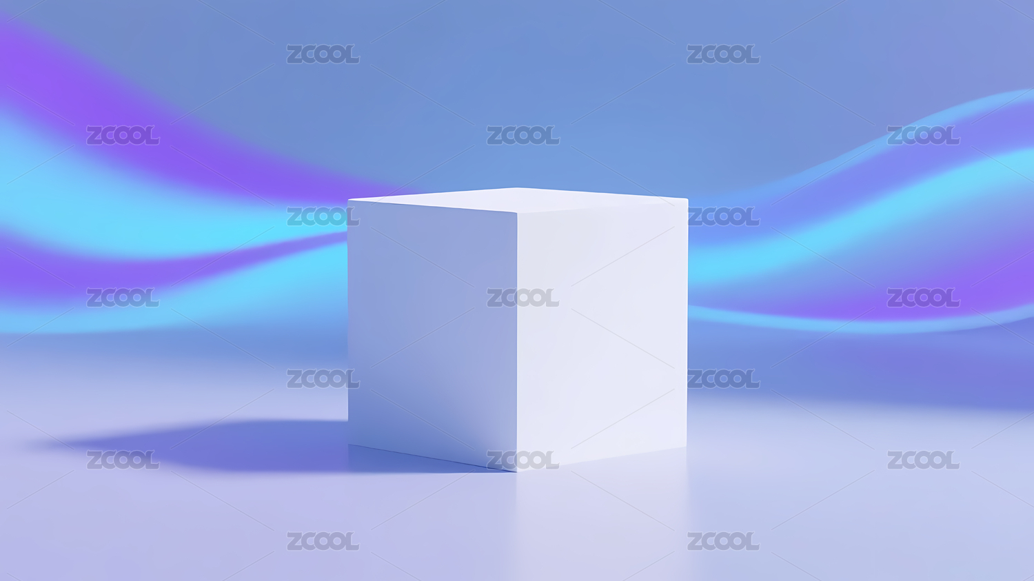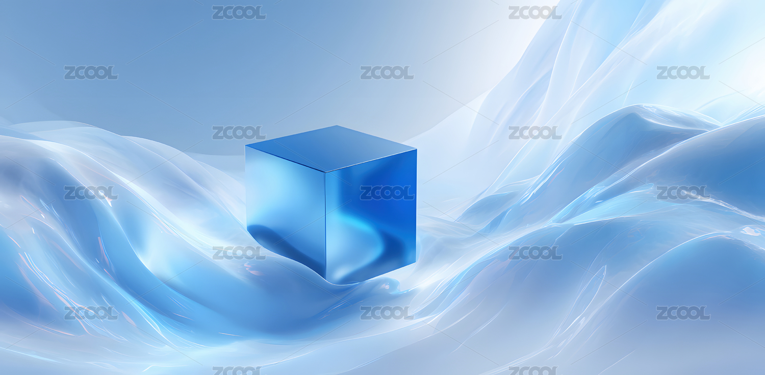 蓝色立方体置于白色纹理背景