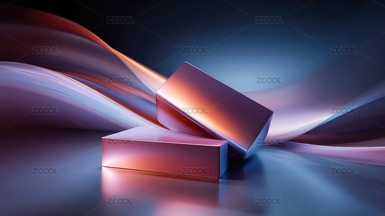 飘逸的彩纱与简约立方体