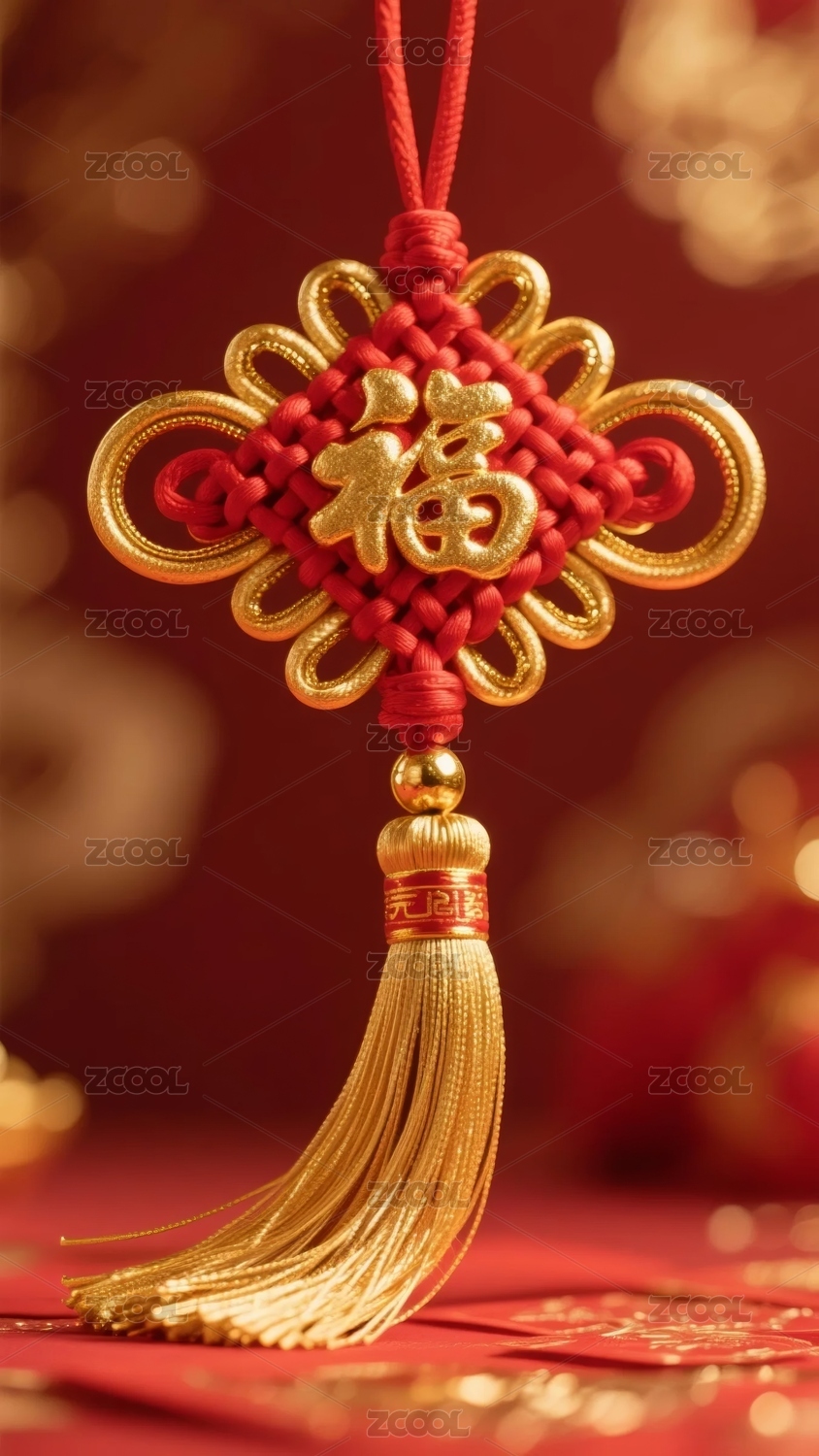 红色背景下的挂饰
