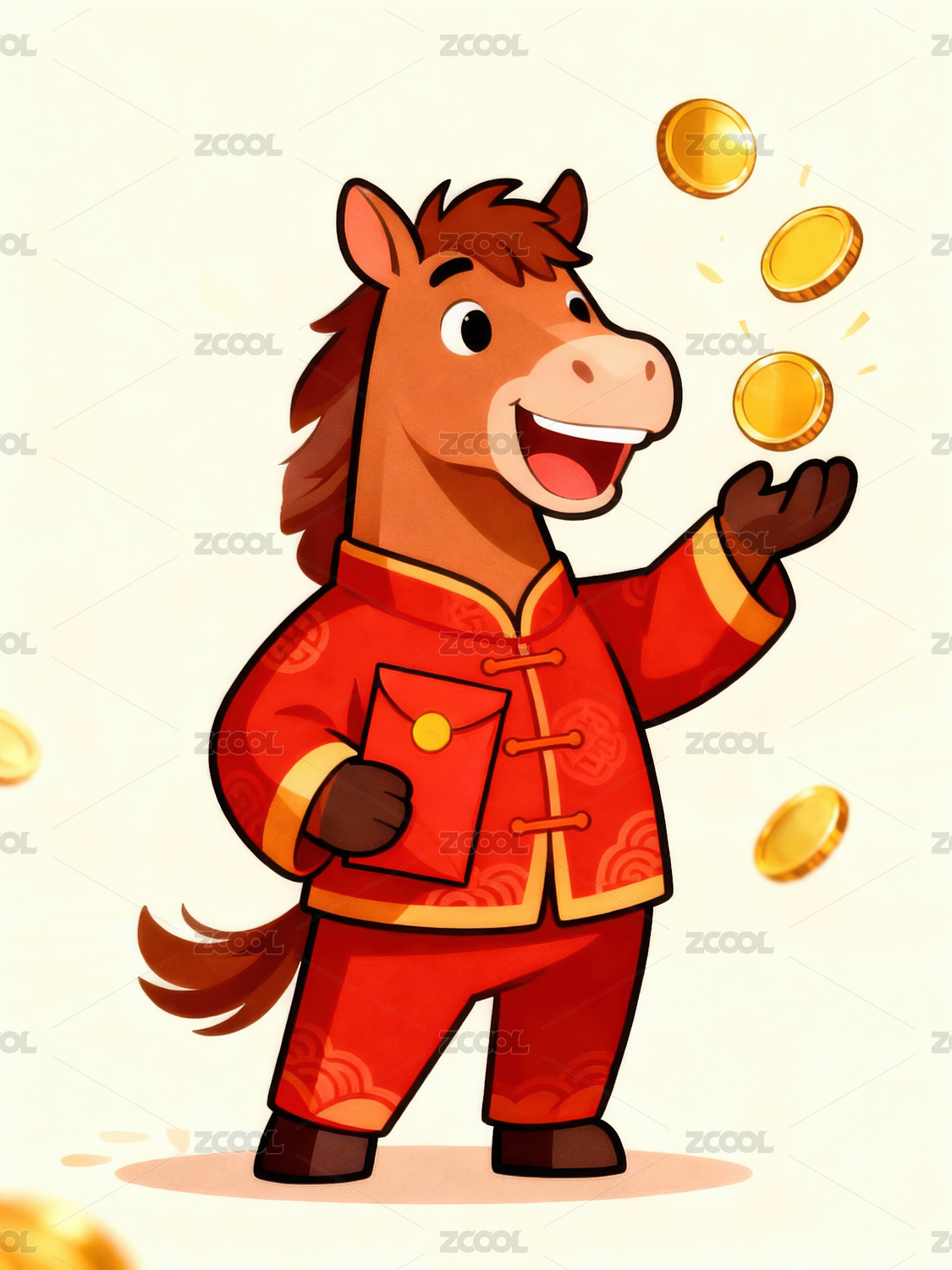 手捧金元宝的可爱生肖马年插画