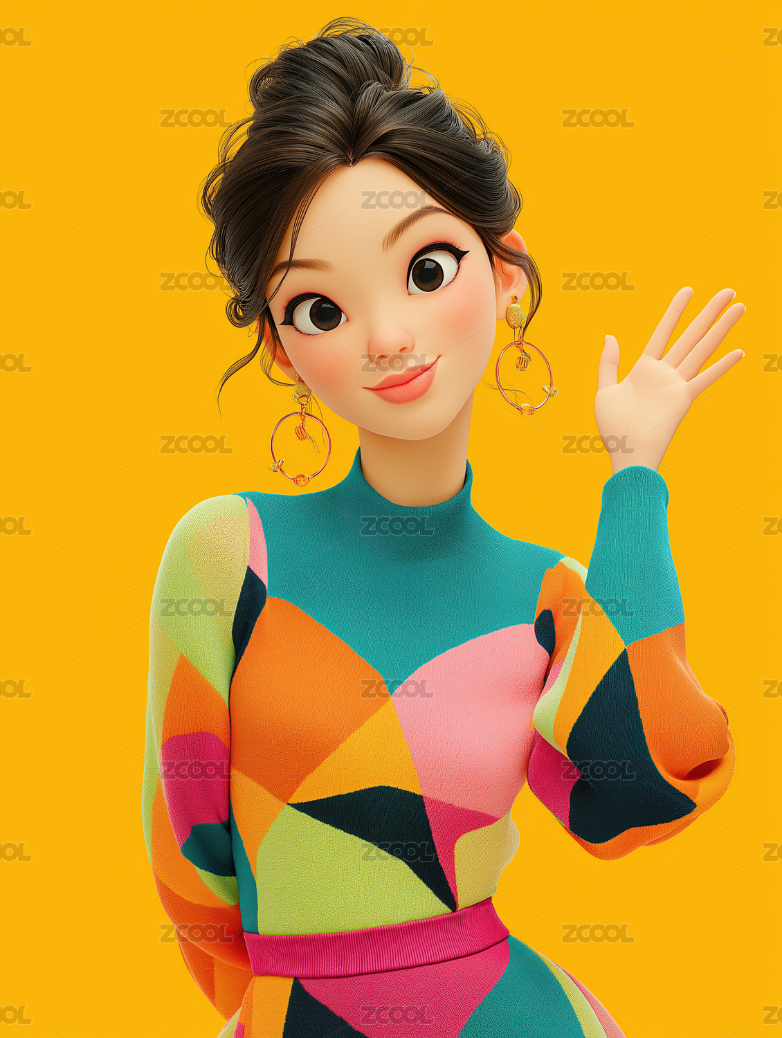 插画,卡通,设计,简约,形象,3D,开心,女人,伸手,女孩