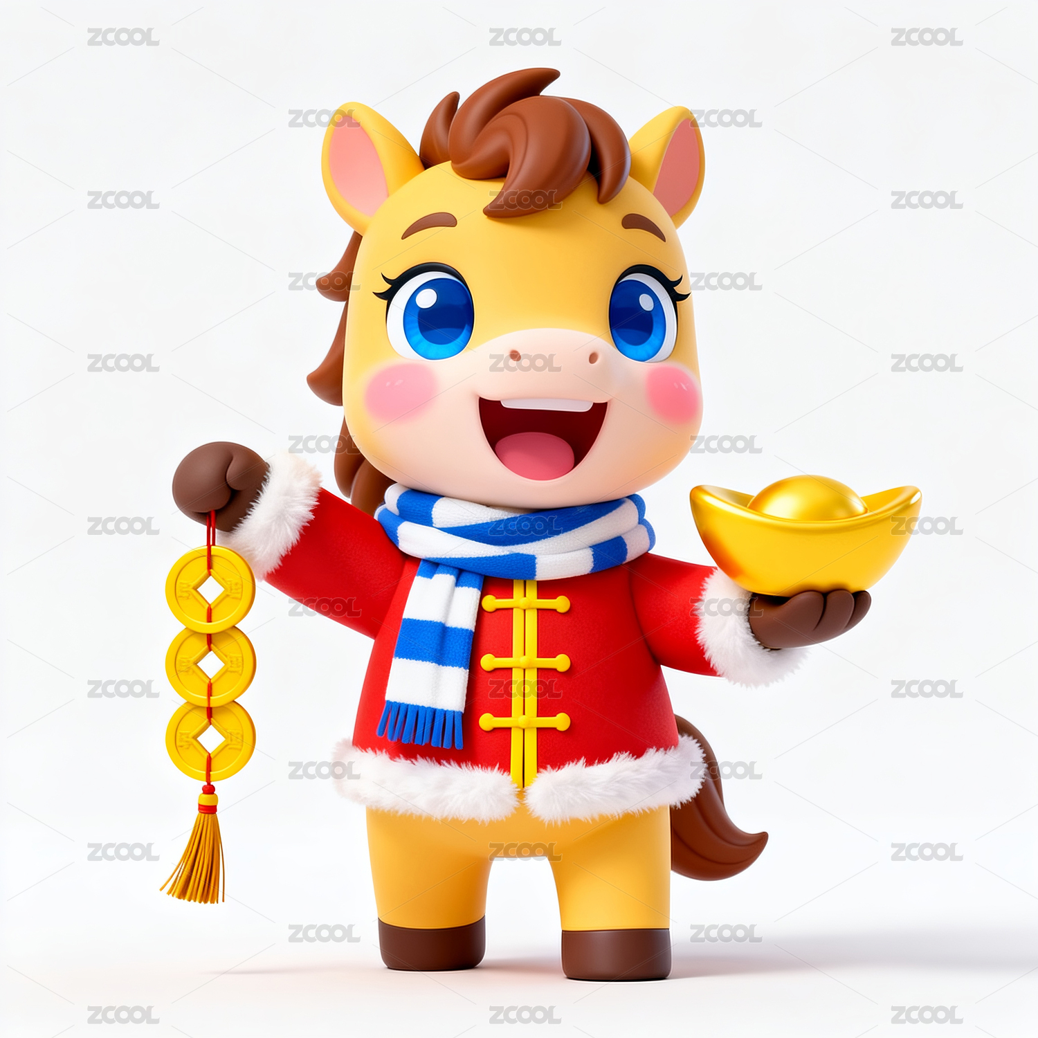 手捧大元宝的马3D卡通插画