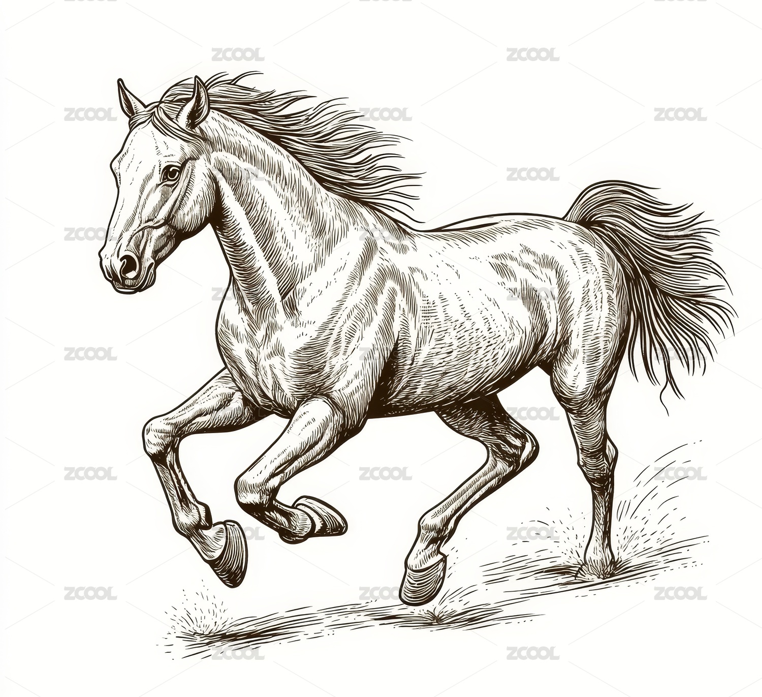 骏马,奔跑,素描,艺术,插画,动态,动物,线条,黑白,活力