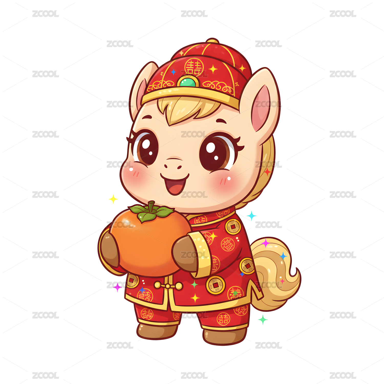 喜庆可爱的3D卡通插画的马