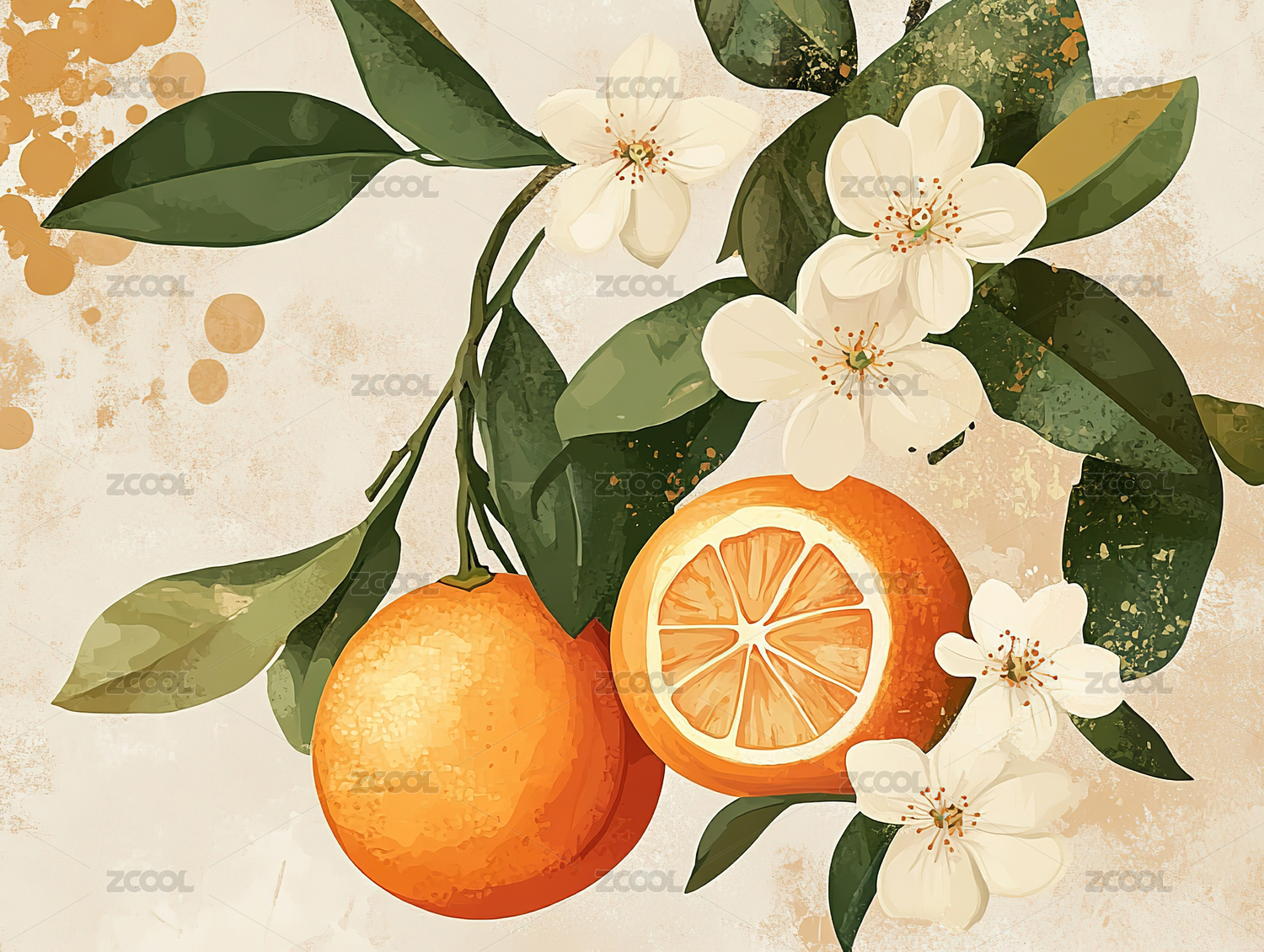 橘子橙子水果插画