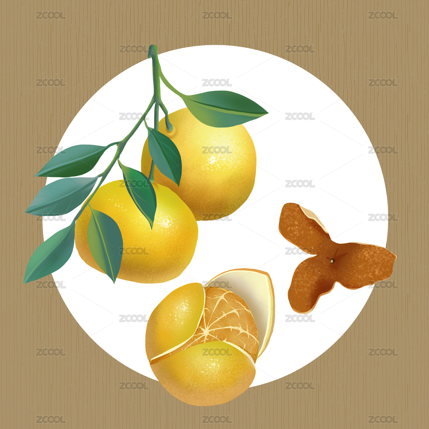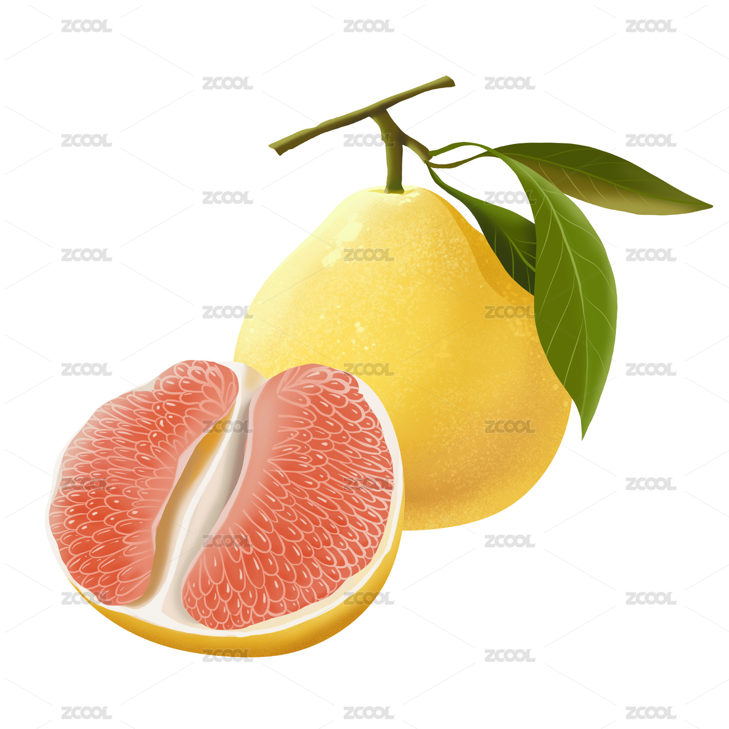 植物,插画,食品,中式,水果,果实,柑橘属,黄皮,写实,白心柚子