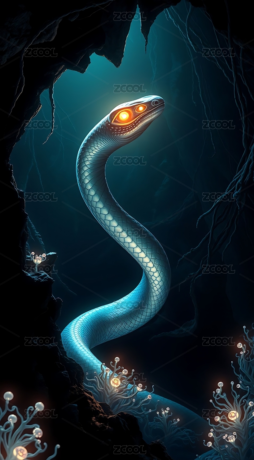 巨龙, 发光珠链, 张口咆哮, 红眼,洞穴