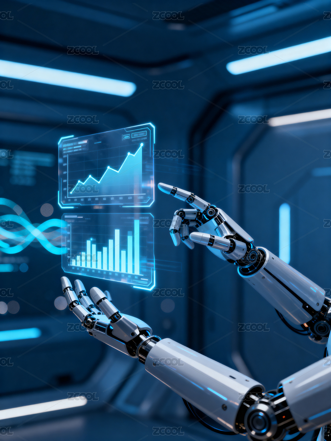 蓝色暗黑光芒高科技AI智能数字人发光手指