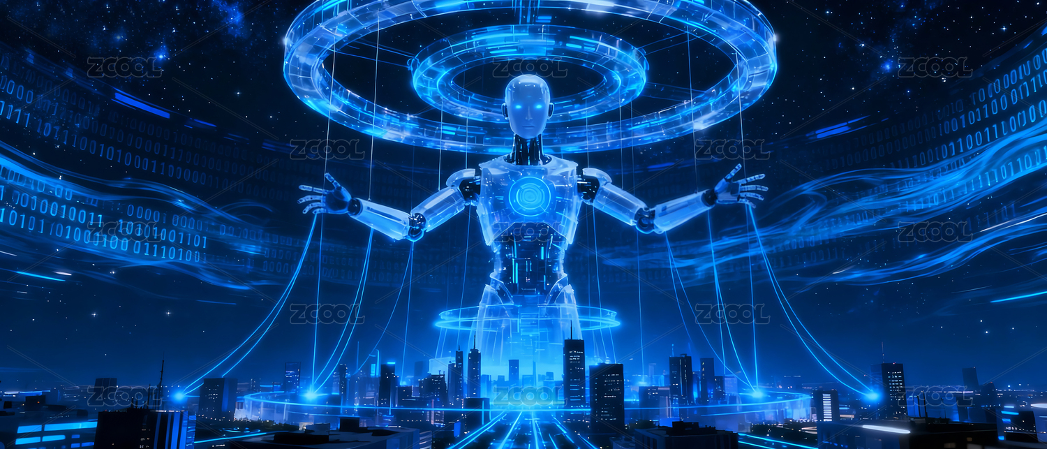 未来科技感机器人与数据光环