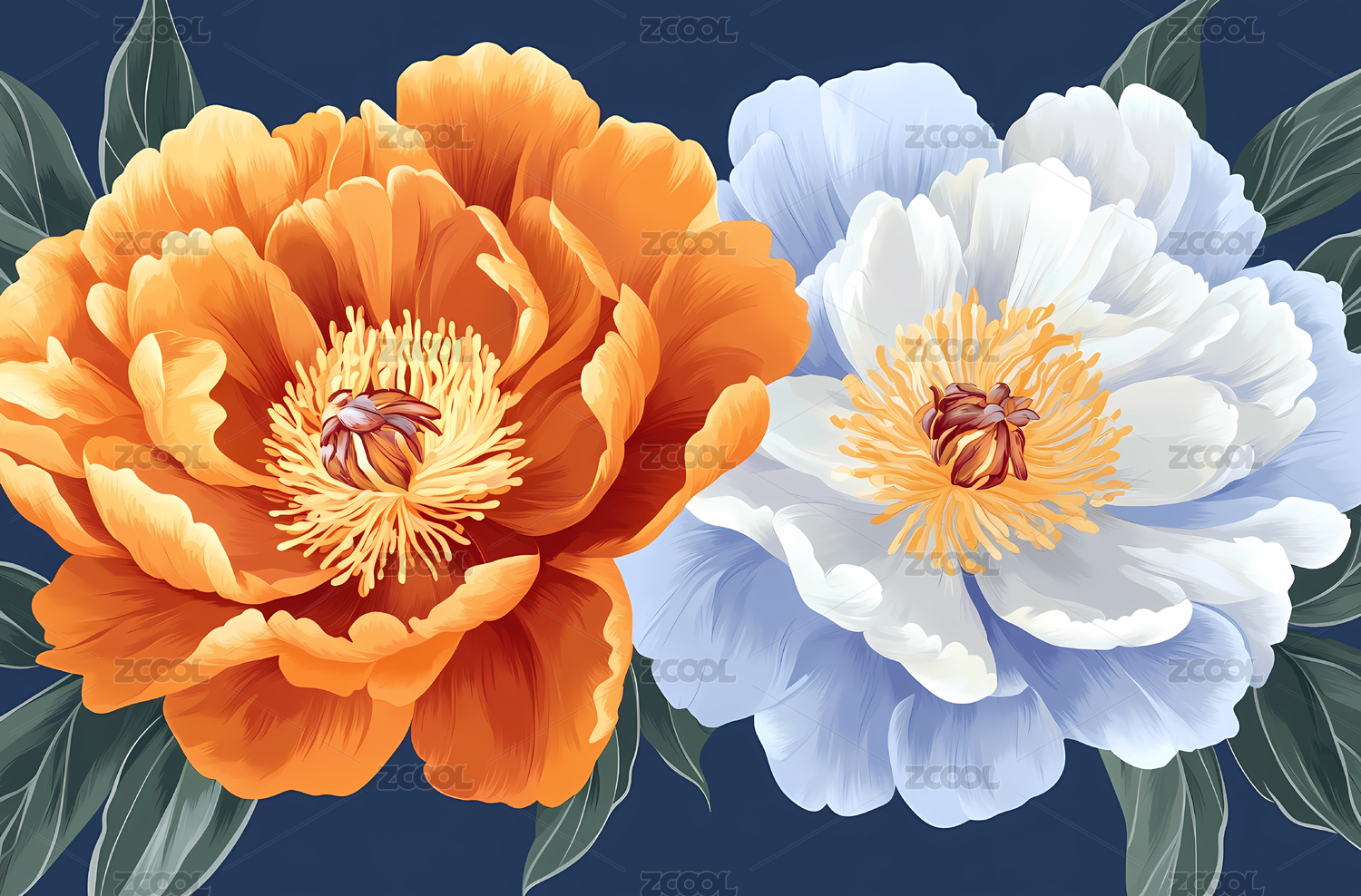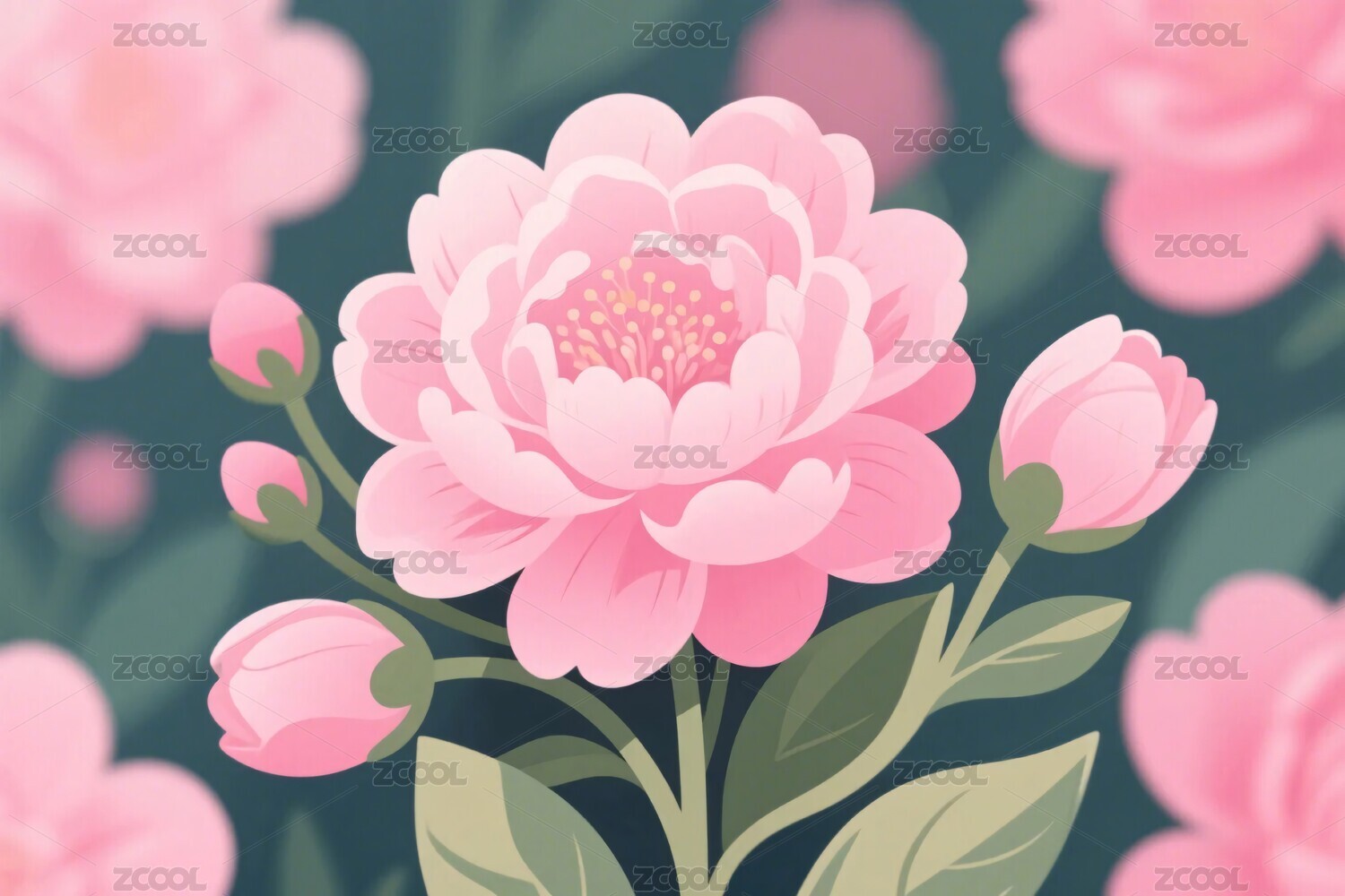 浮世绘植物花卉一朵大花红白相间绿叶留白