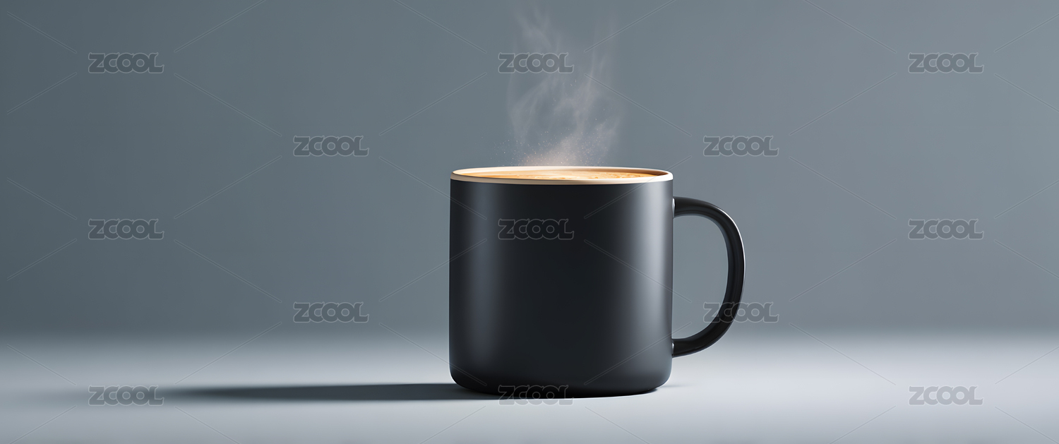 冒着热气的黑色杯子