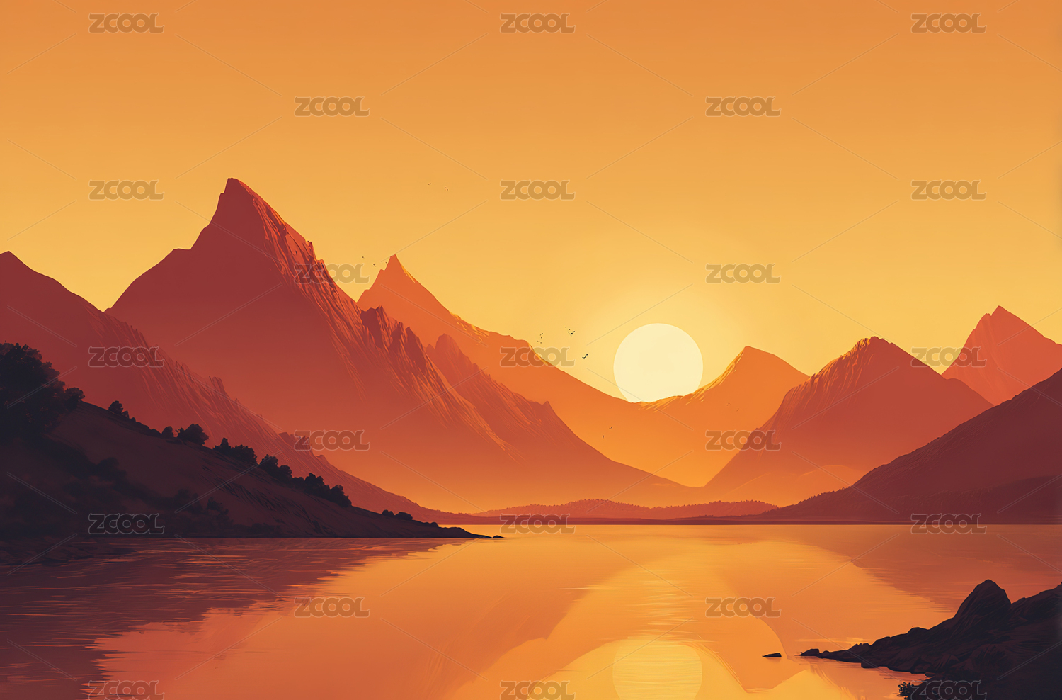 自然,宁静,艺术,风景,树木,户外,秋景,天空,日出,日落