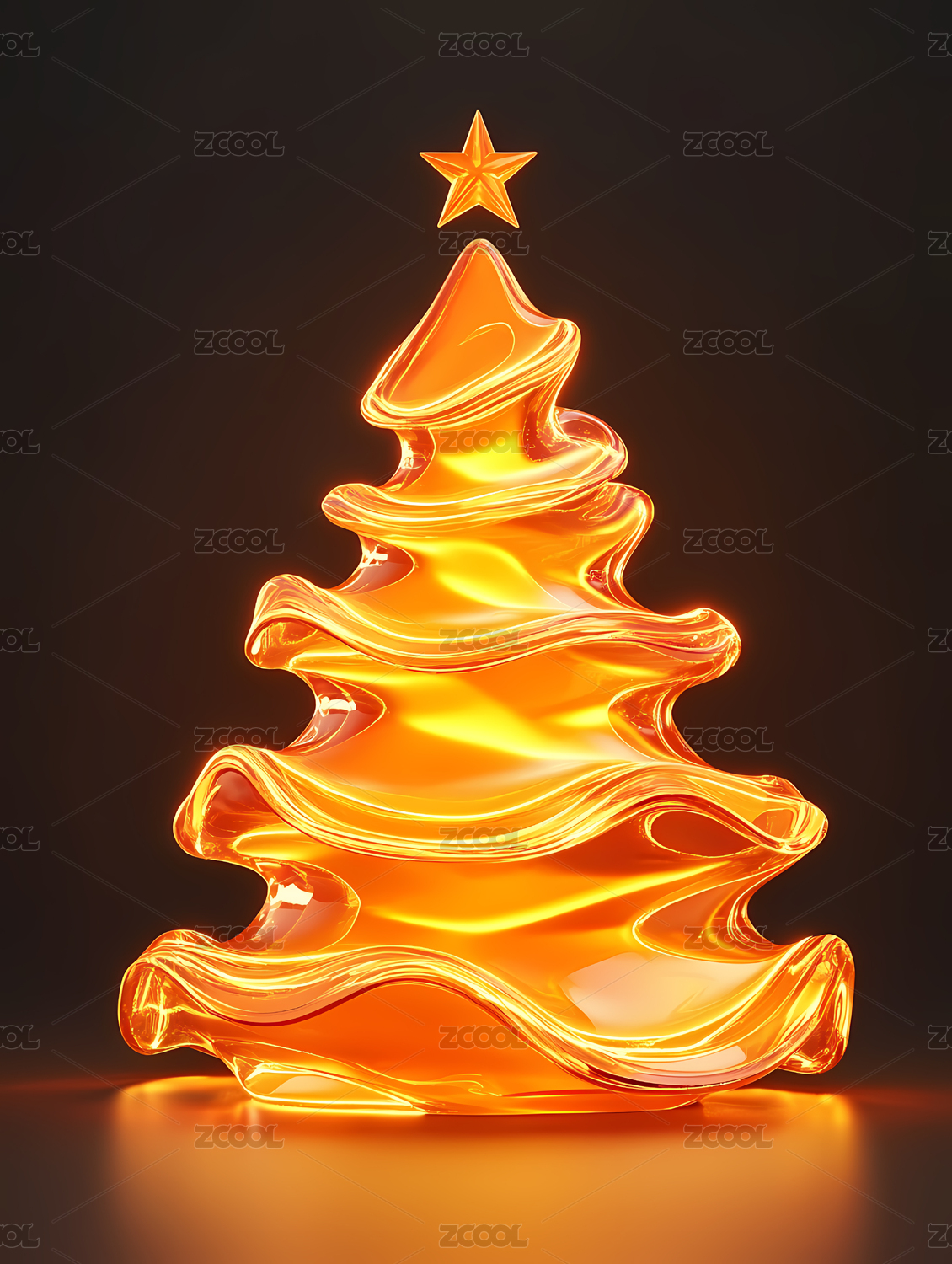 3D金色透明发光圣诞树装饰元素