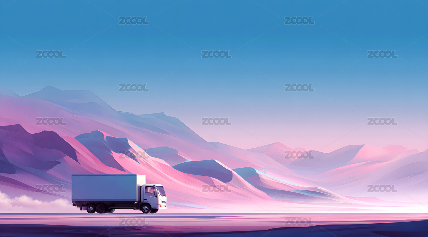 夕阳下蜿蜒的公路上行驶的卡车插图
