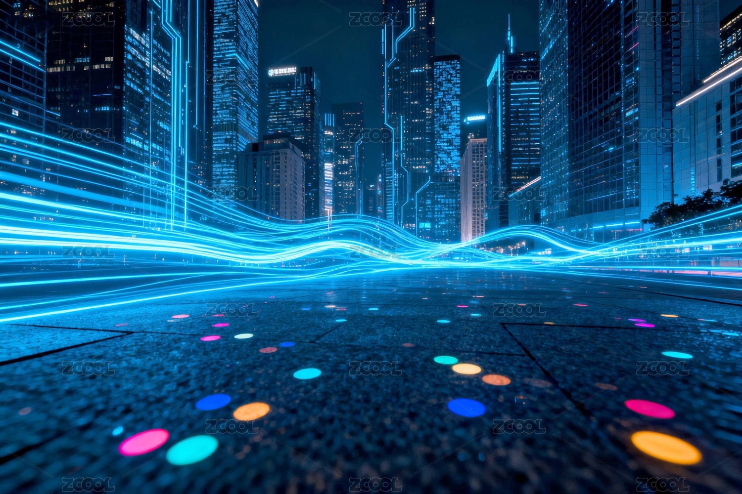 光带炫酷都市夜景场景