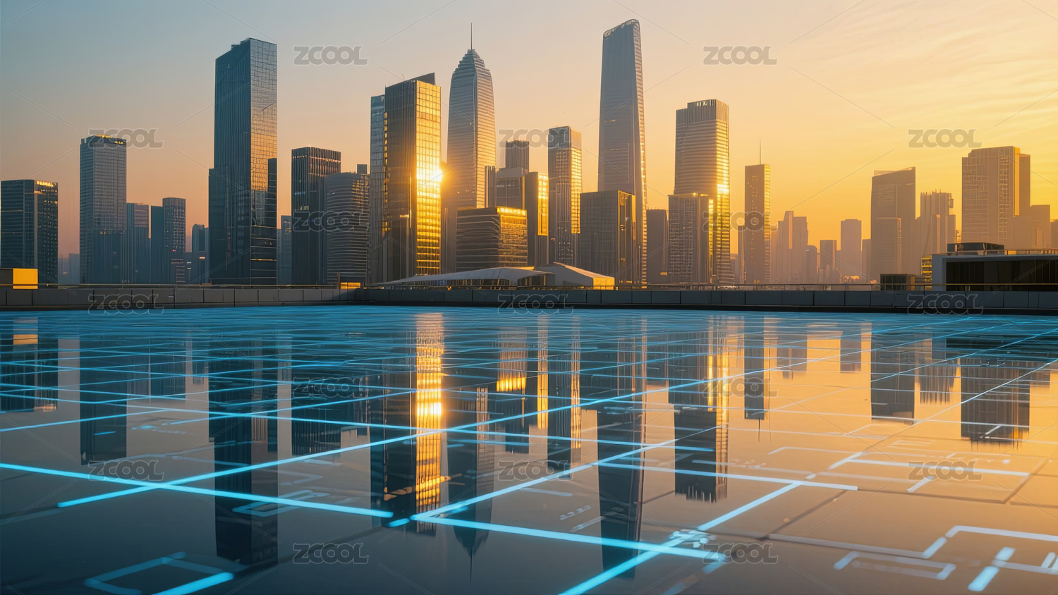 日出城市天际线和科技感网络平台