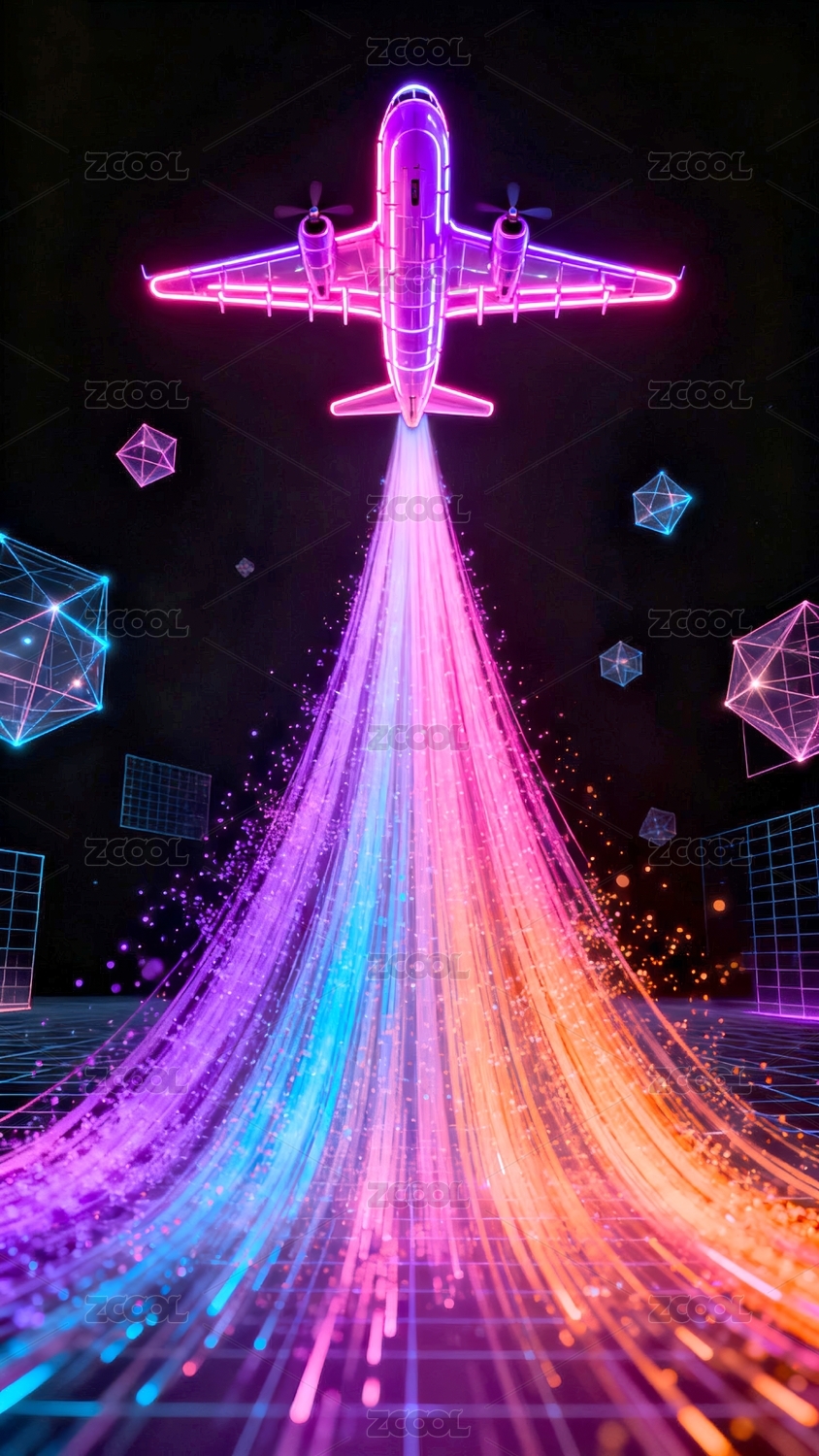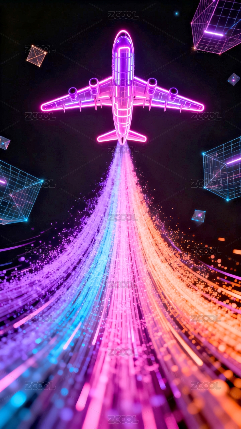 七彩霓虹飞机炫光图