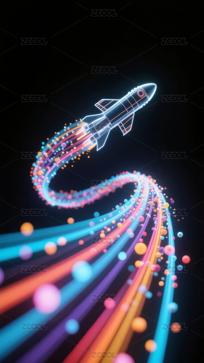 霓虹火箭穿越彩色光带