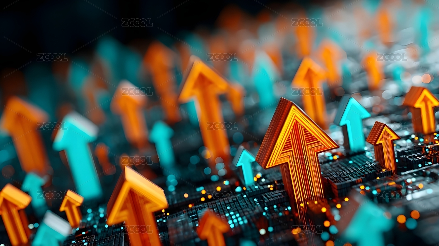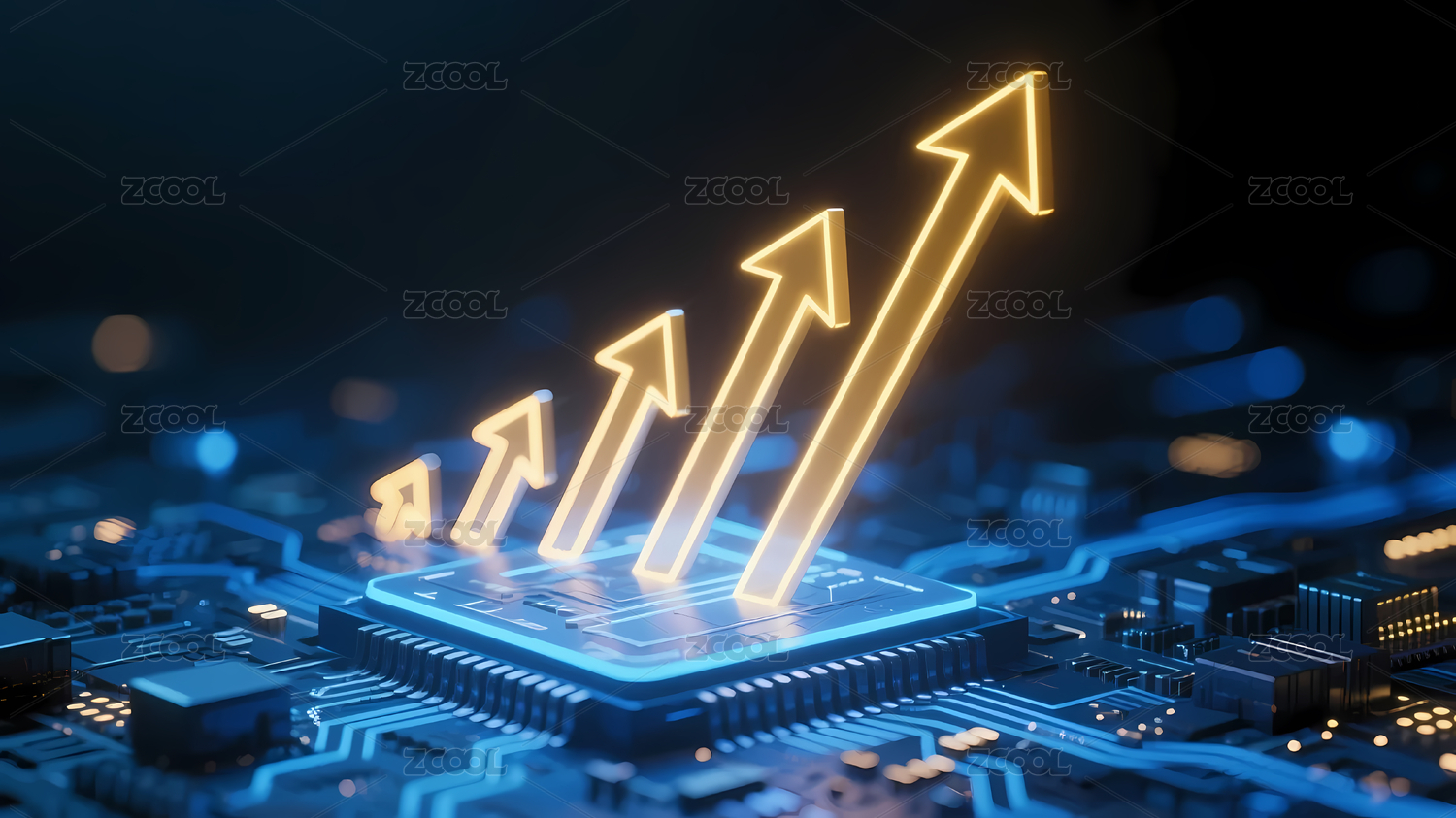 主视觉,商业,壁纸,背景,上升,箭头,暖光,科技,电路,芯片