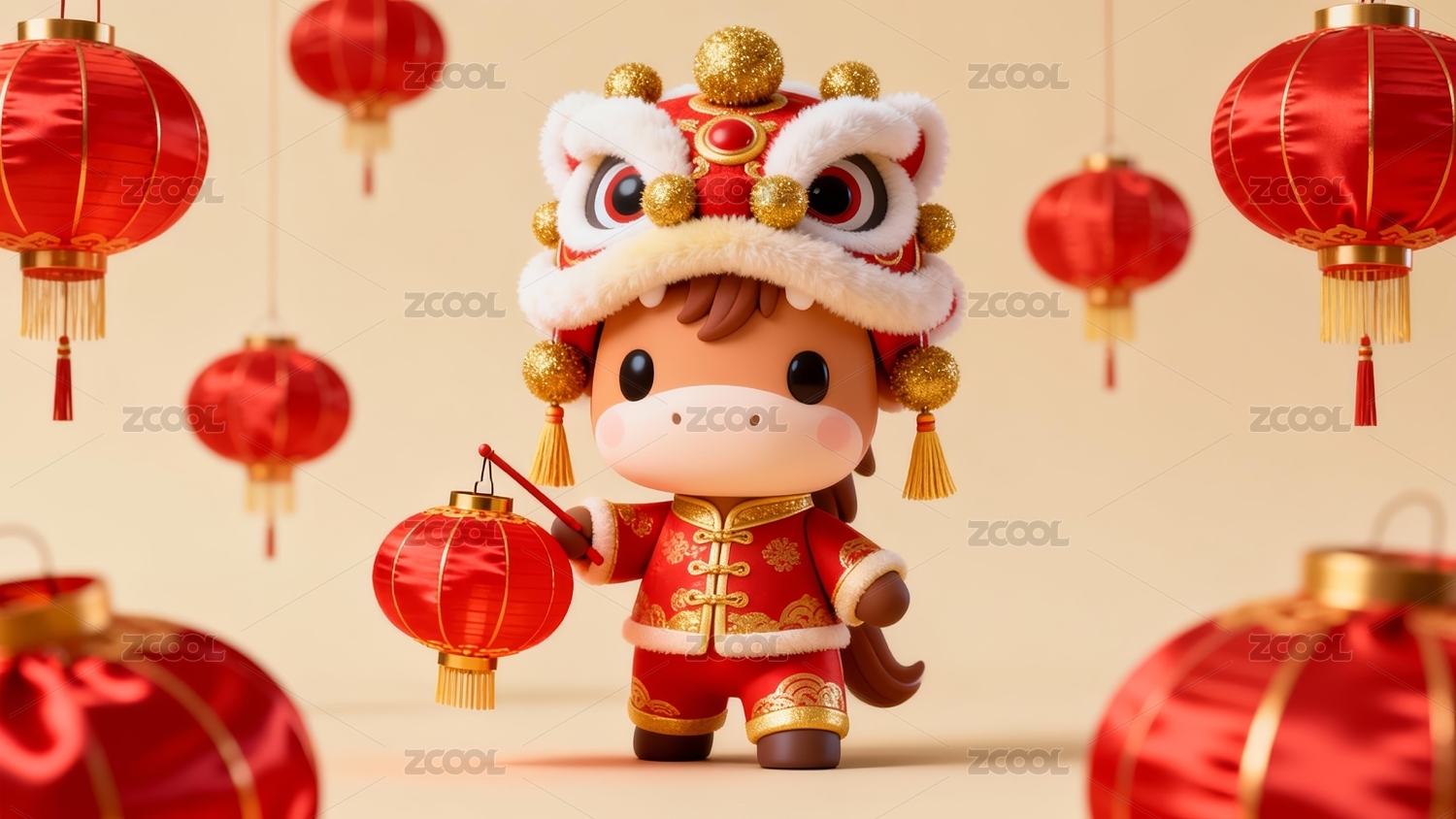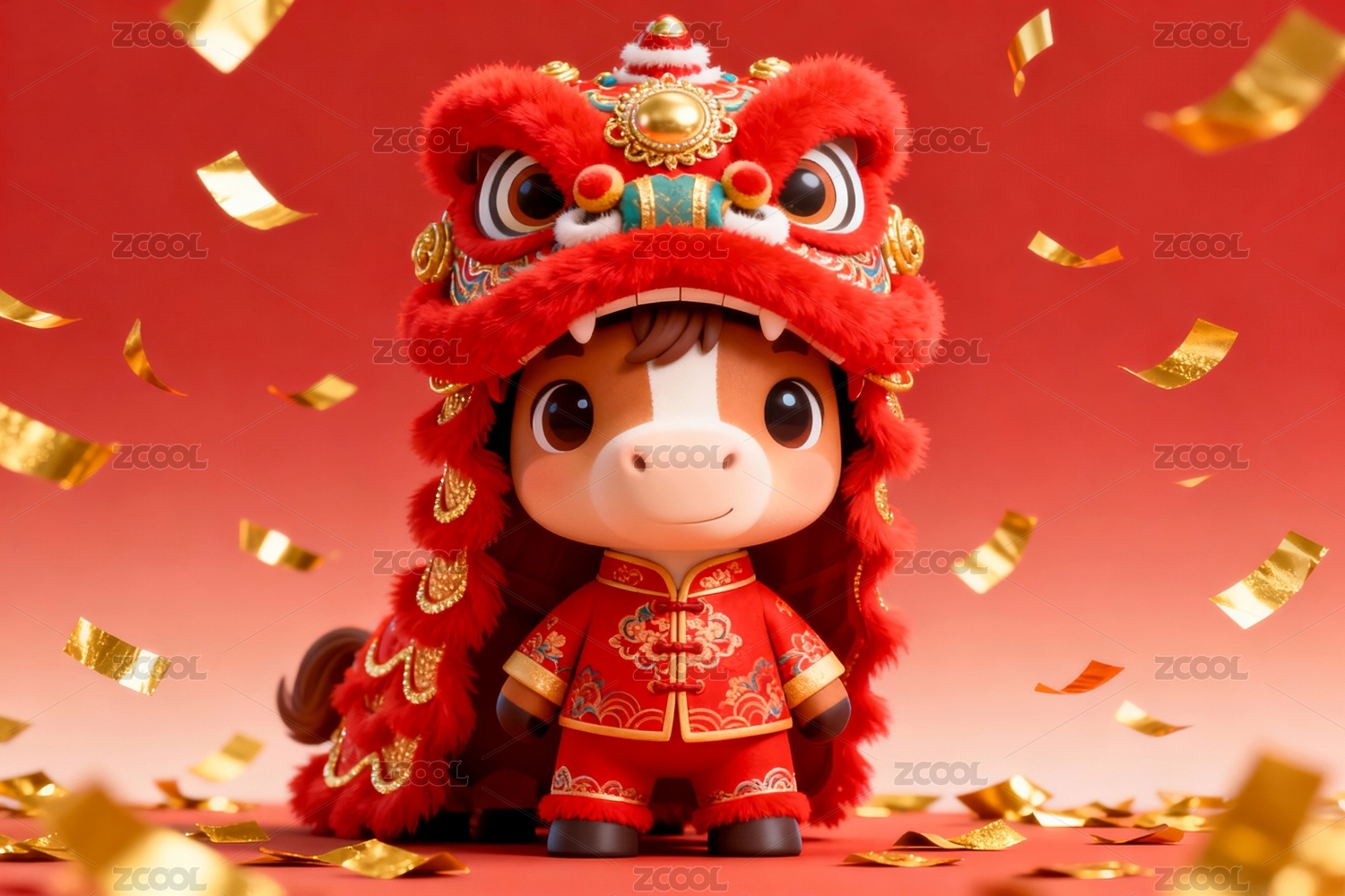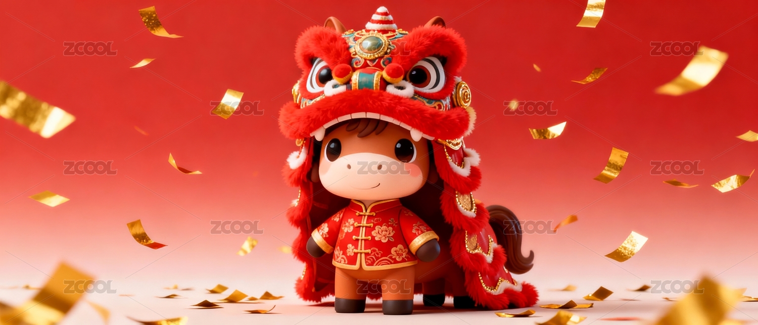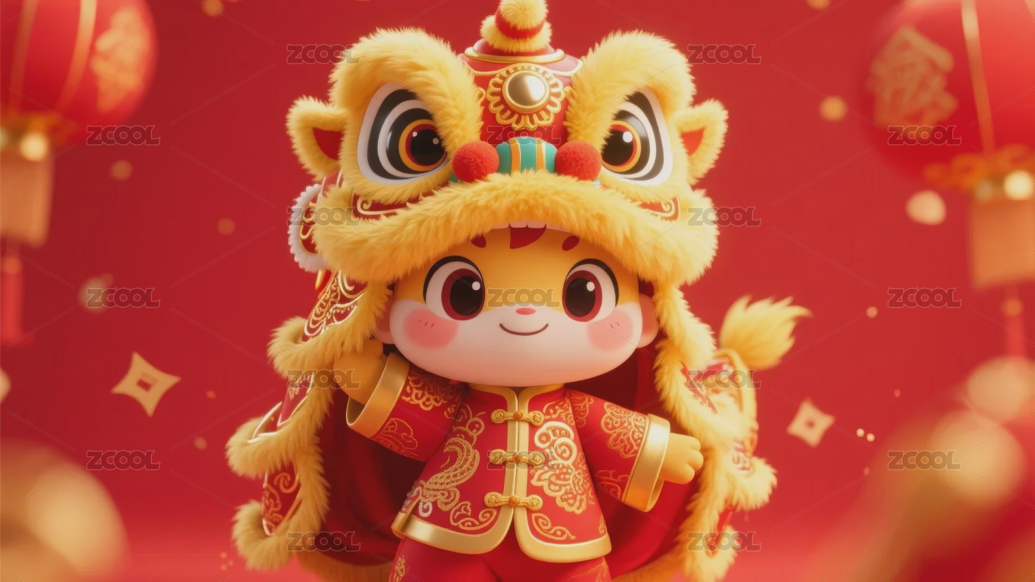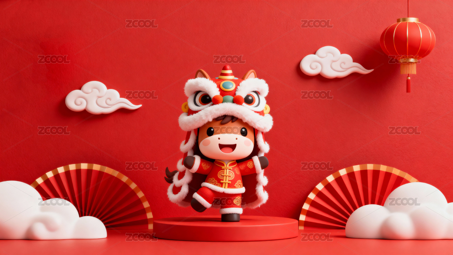 主视觉,商业,壁纸,国风,喜庆,装饰,插画,舞狮,新春,贺岁