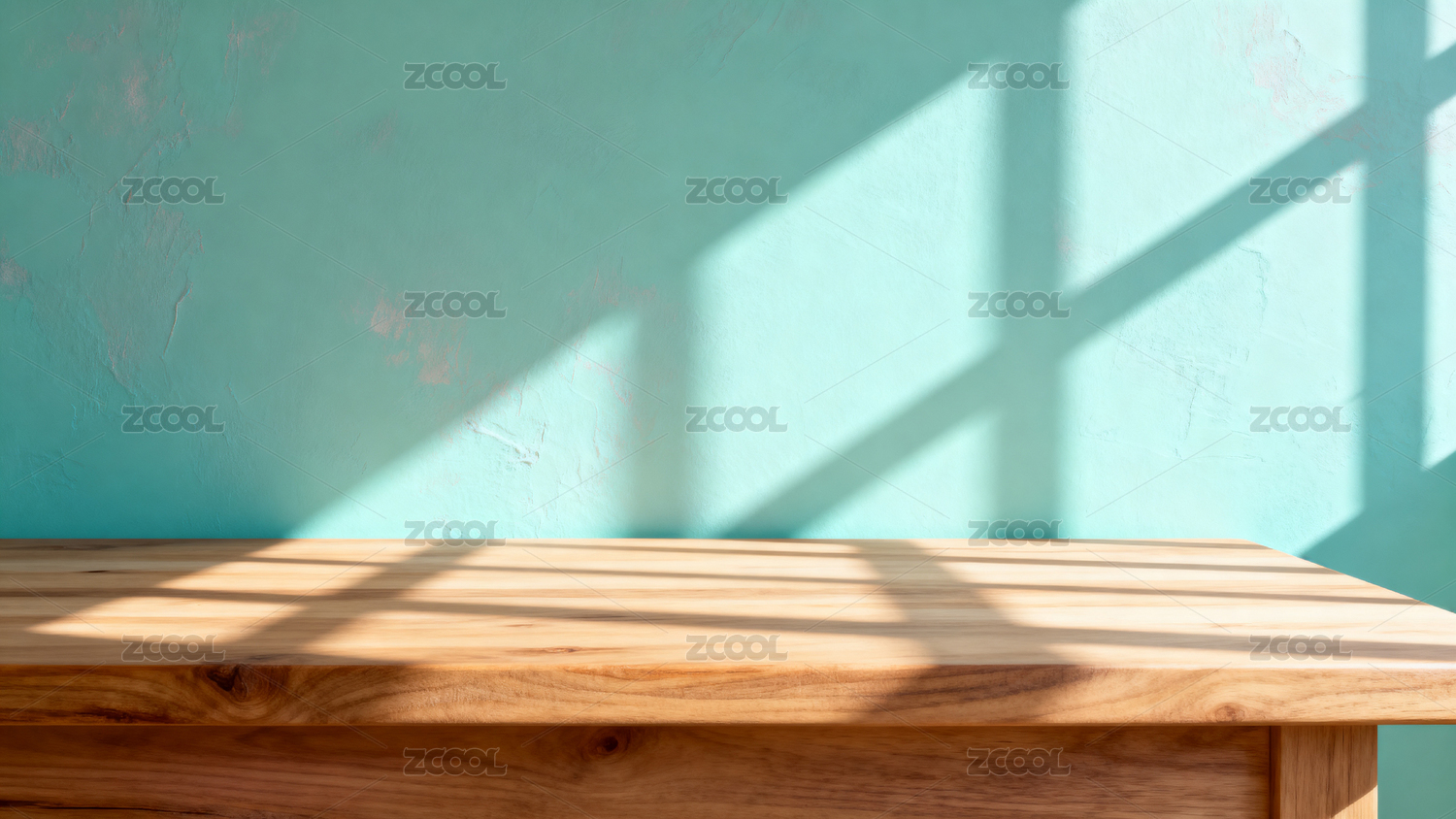 阳光木桌与绿墙光影