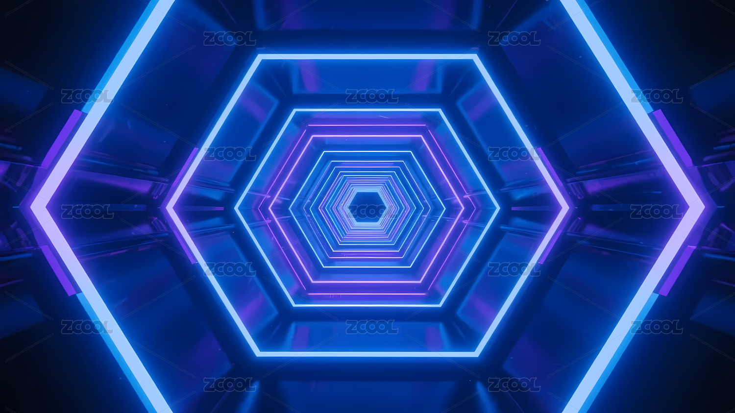 蓝色,科技,未来,深黑,六边形,光效,粉色,抽象,霓虹,几何