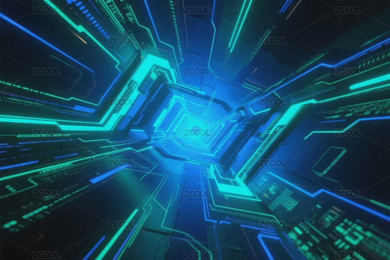 蓝色科技隧道光影