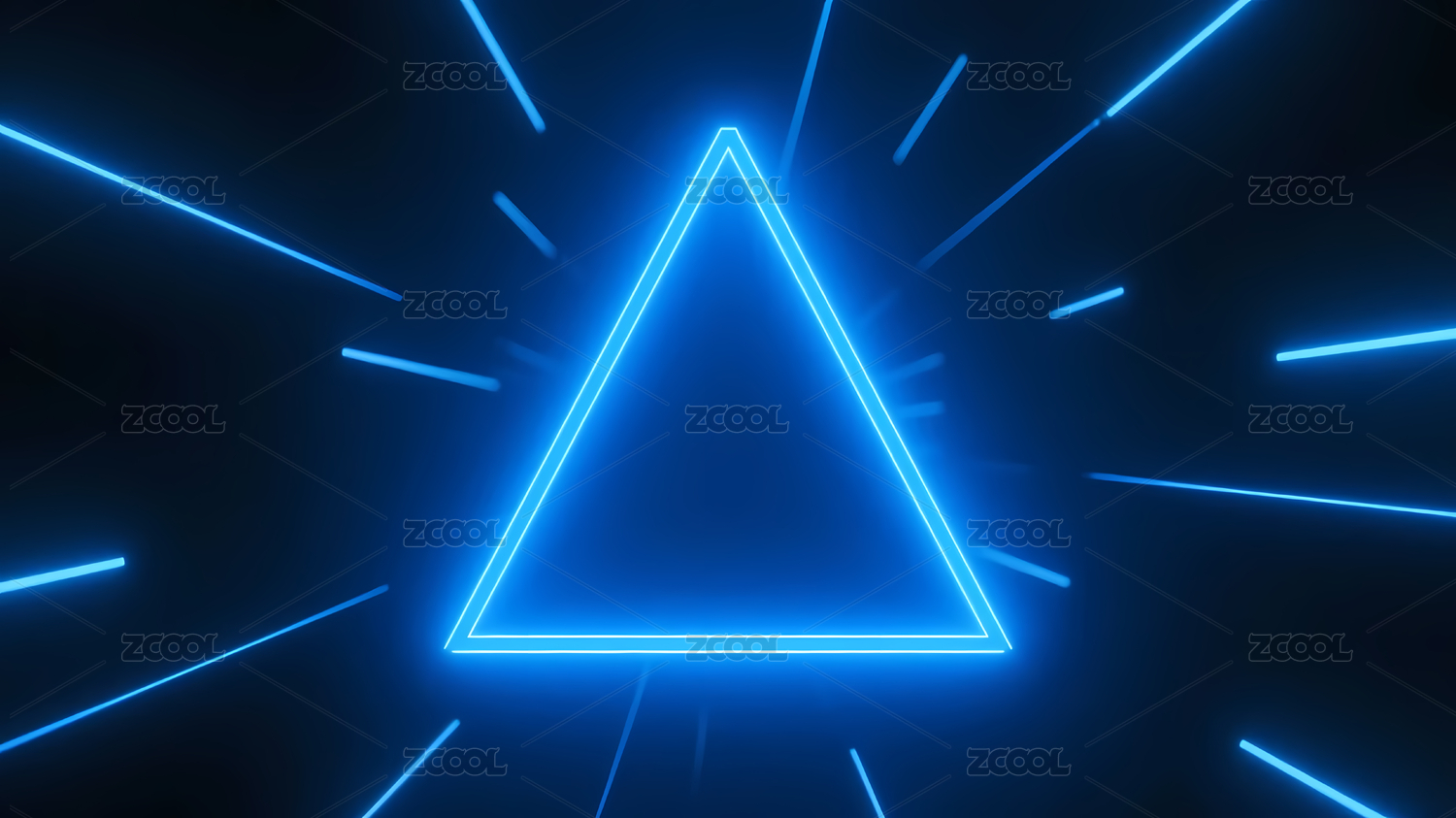 蓝色,线条,发光,三角形,虚线,立体,几何,科技,未来,黑色